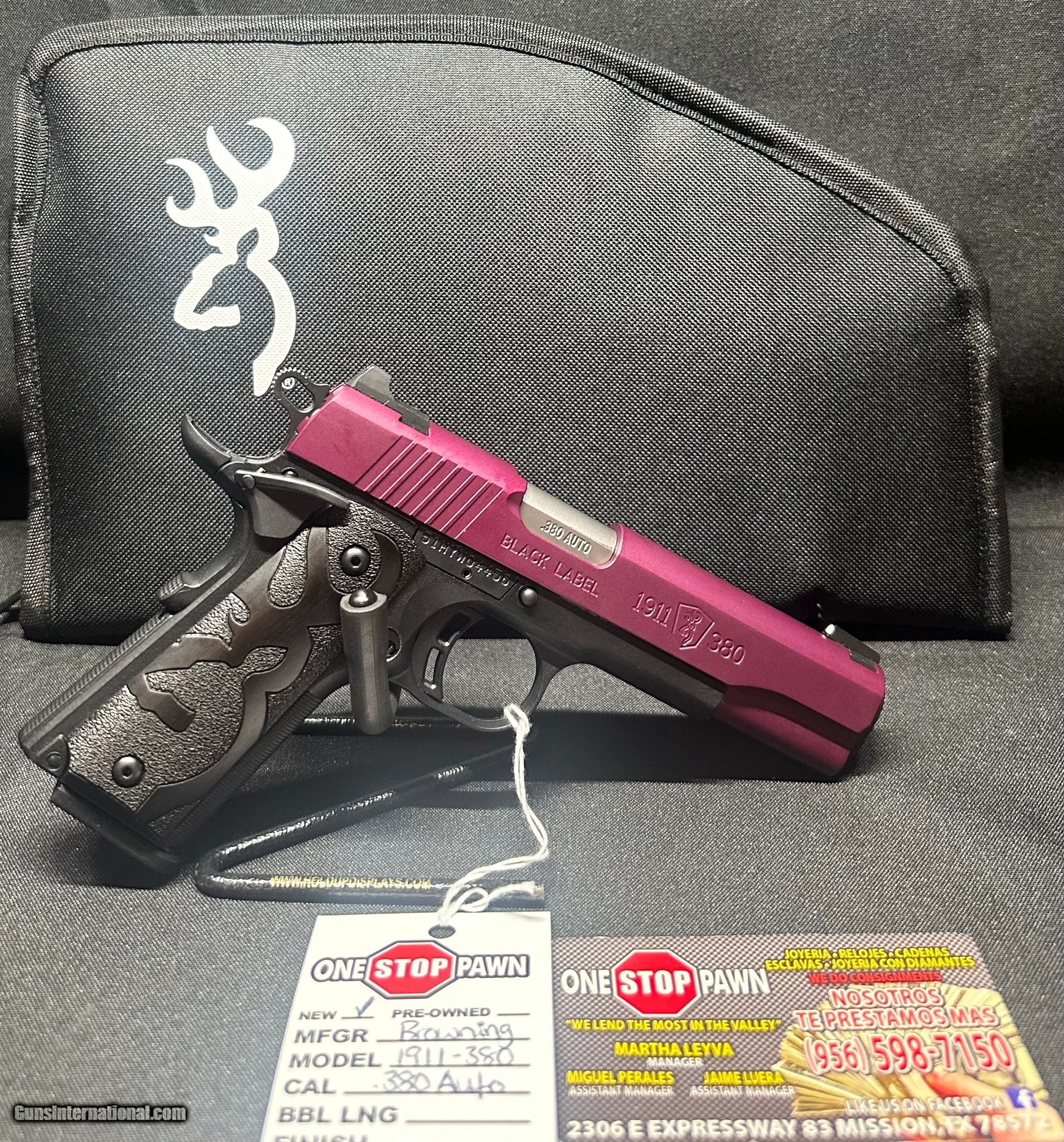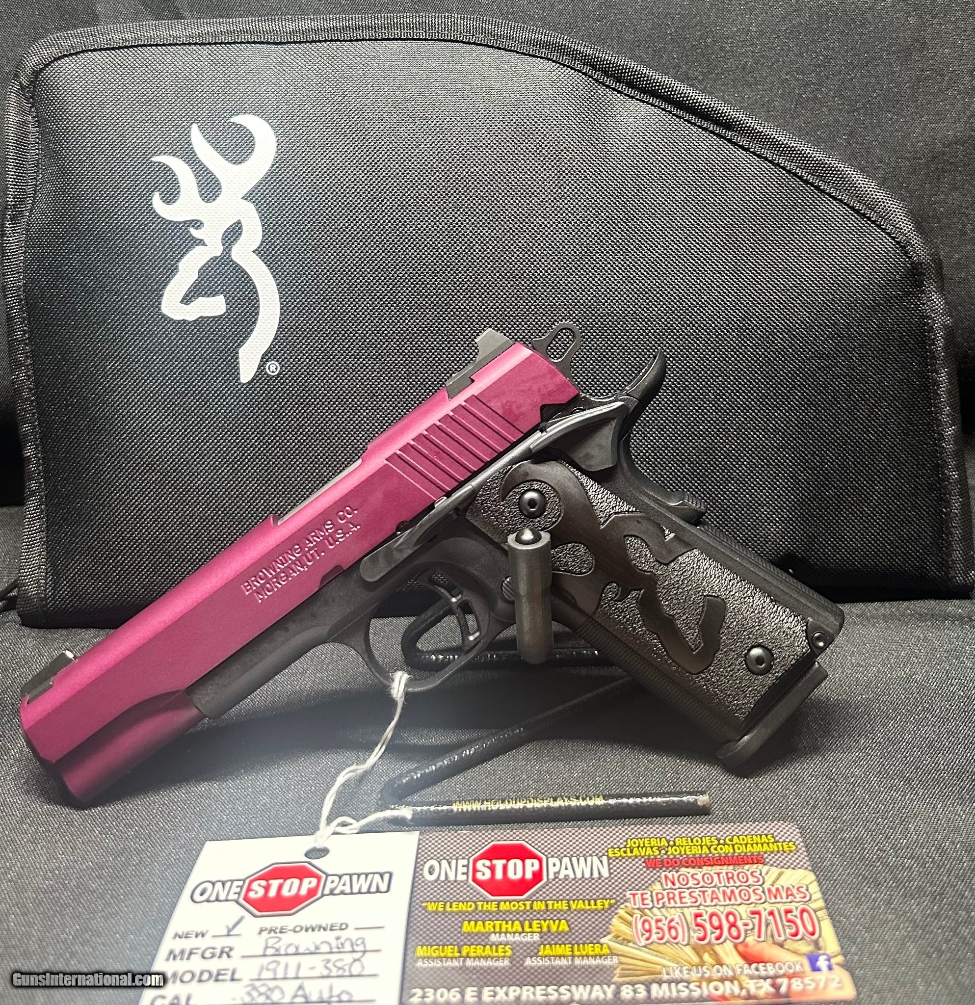 Description: Guns Listing ID: 393548 NEW!!! IN ORIGNAL BOX HAS SOFT CARRY POUCH 2 MAGS TOTAL MAROON/ DARK PURPLE COLOR SLIDE SOLD Manufacturer: BROWNING Model: 1911-380 Caliber Info: .380 ACP Condition: Used - Non-Certified Barrels: 4.25 BARREL Action: SEMI AUTOMATIC Finish: PURPLE Weight: not specified |