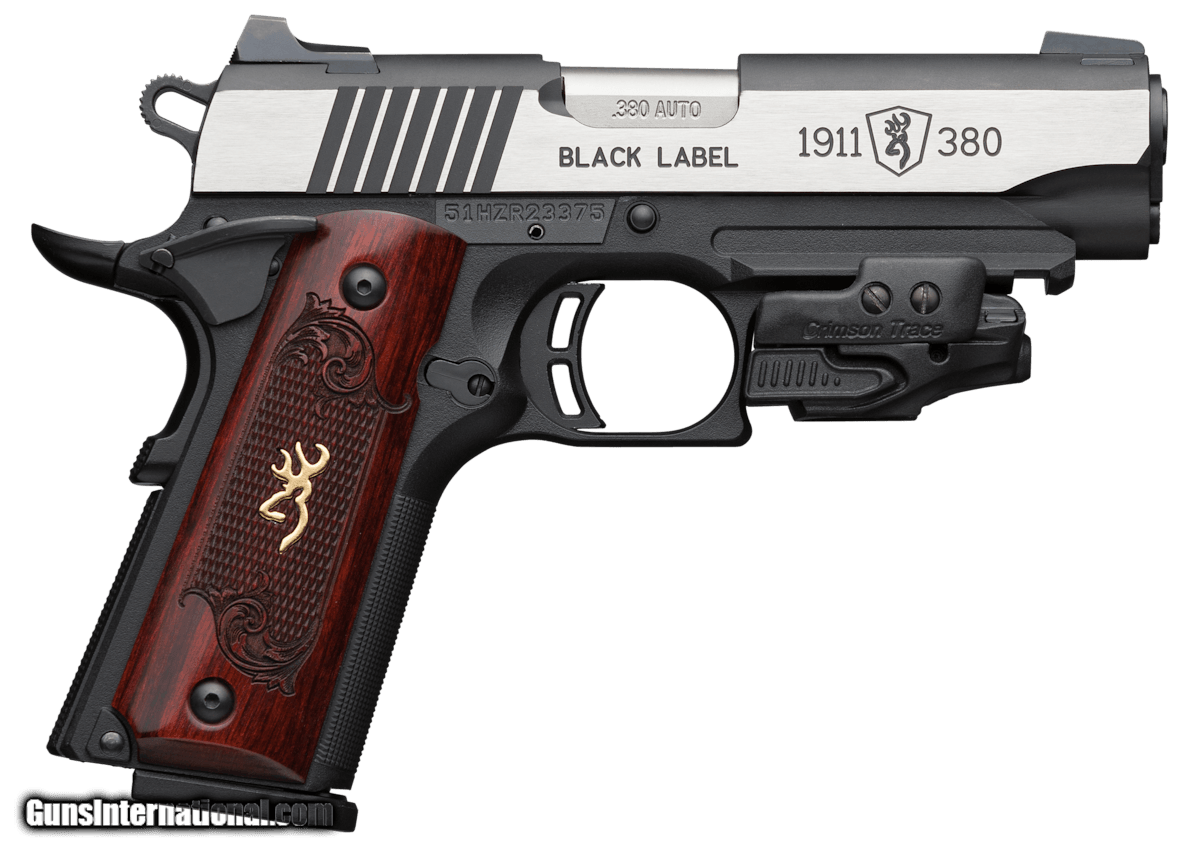 Description: Guns Listing ID: 347968 Unlike other .380 ACP auto loaders on the market the 1911-380 is the only authentically designed full featured 1911 style handgun currently available that is chambered in 380 ACP. The 1911-380 is slightly larger than all of the popular micro 380s the grip is long enough for three fingers to fit comfortably below the trigger guard the slide and barrel are longer yet the 1911-380 only weighs 35 ounces more than subcompacts. These slight increases make a big difference when shooting reducing recoil and allowing for more comfortable shooting more control and more accurate follow up shots. A 1911-380 is still easily concealed with its smaller size and single stack magazine that offer a compact flat profile that fits easily inside the waistband and keeps the grip narrow for shooters with smaller hands. Features Checkered wood grips with inlaid Buck Mark Picatinny accessory rail with Crimson Trace laser stainless finish slide flats. The 1911-380 pistol is shipped in a sturdy ABS case. Includes a pistol rug and two magazines. SOLD Manufacturer: BROWNING Model: 1911-380 Black Label Medallion Caliber Info: .380 ACP Condition: new Barrels: 3.63 BARREL Finish: STAINLESS |