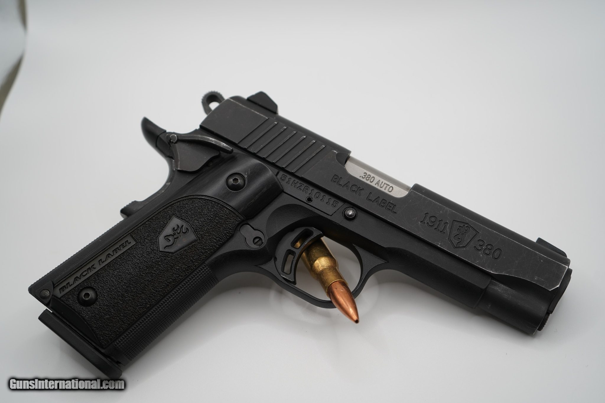 Description: Guns Listing ID: 468197 OWB Holster (Right Hand), 3 Magazines w/ Magazine OWB Holster The Browning 1911-380 combines two of John M. Browning‚‚s most lasting innovations - the Model 1911 and the 380 ACP cartridge - into a modern, lightweight pistol. Unlike most of the modern \"pocket pistols\" that chamber the snappy 380 ACP cartridge, the 1911-380 is slightly larger to better manage recoil for improved control that makes follow-up shots faster and more accurate. The longer barrel increases bullet velocity for more downrange punch and improved accuracy. The grip is compact, yet is long and wide enough to allow the shooting hand full purchase for added shooting comfort SOLD Manufacturer: BROWNING Model: 1911 380 BLACK LABEL Caliber Info: 380 AUTO Condition: Used - Non-Certified Barrels: 4.25 BARREL Finish: BLACK NITRIDE |