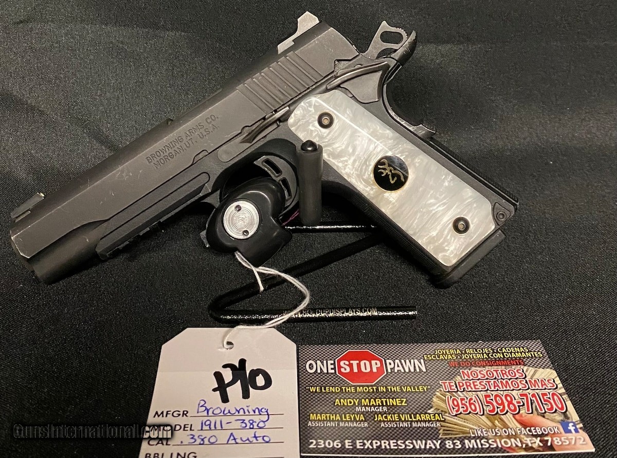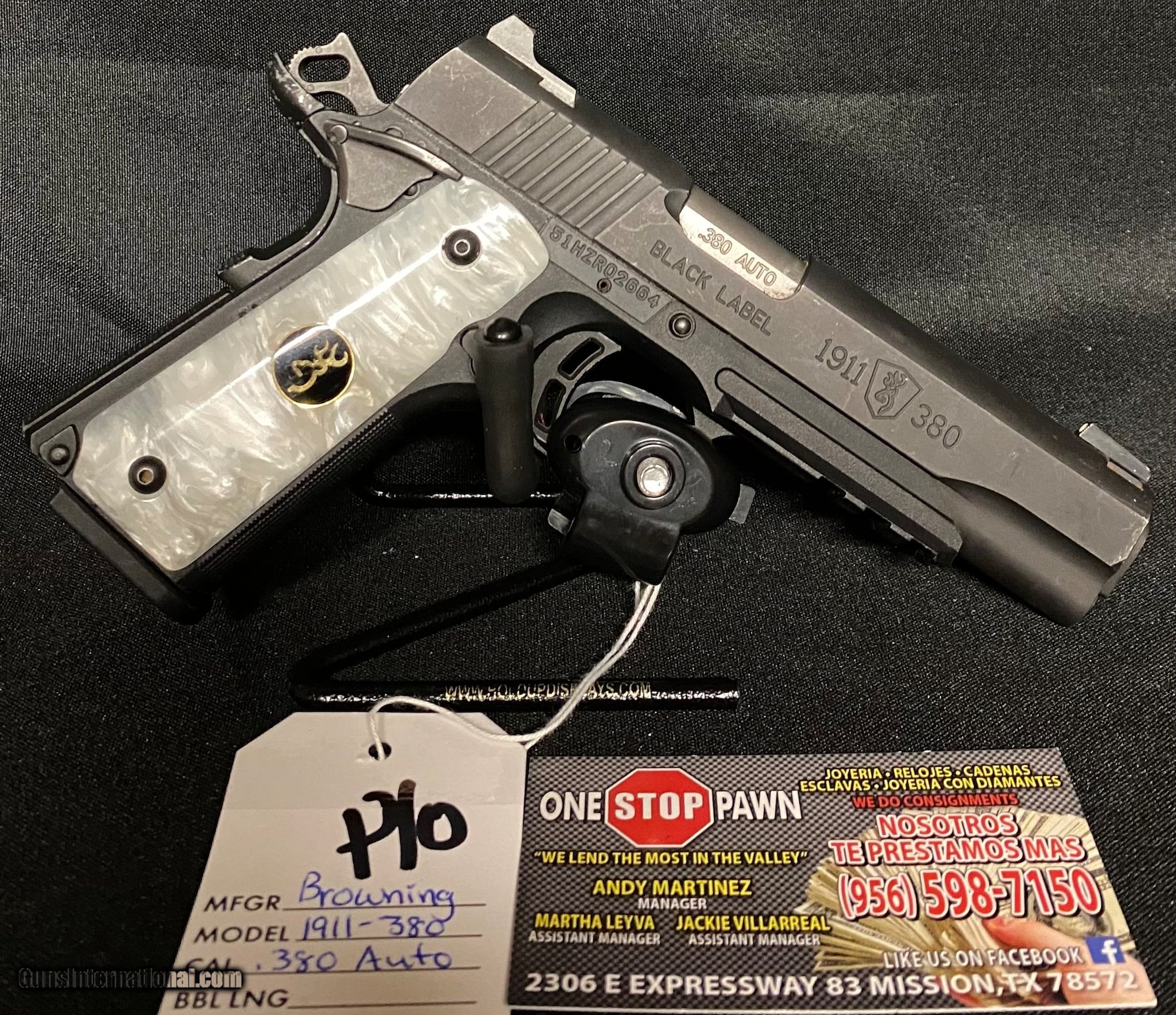 Description: Guns Listing ID: 618456 PRE-OWNED 1 MAG WITH MARBLE LIKE GRIPS WITH BROWNING LOGO. HAS RAIL FOR LASER OR LIGHT SOLD Manufacturer: BROWNING Model: 1911 380 BLACK LABEL Caliber Info: .380 Condition: Used - Non-Certified Barrels: 3 BARREL |