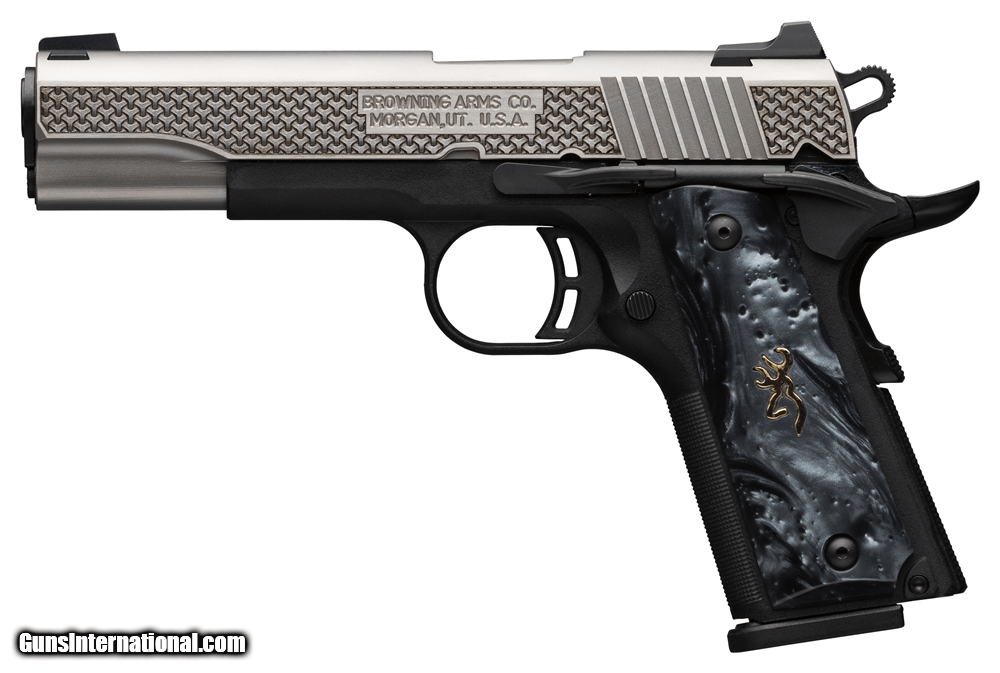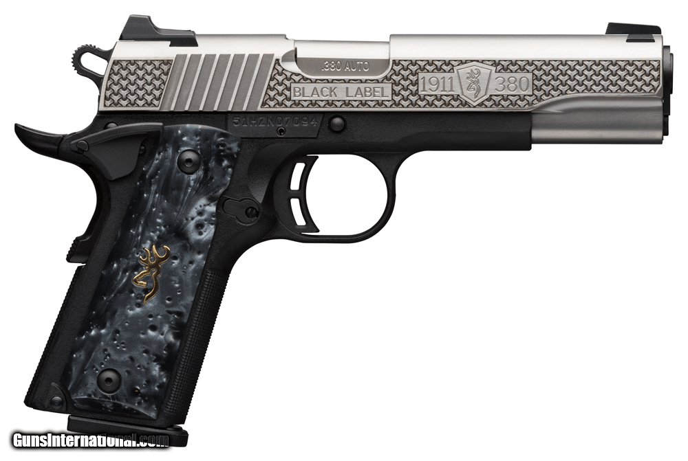 Description: Manufacturer: Browning Model: 1911-380 Black Label High Grade Compact Sku: 051965492 Caliber: .380 ACP Barrel Length: 3.63" Steel, Matte Finish Capacity: (2) 8 Round Magazines Frame: Black Lightweight Composite with Alloy Subframe, Matte Finish Slide: Engraved Stainless Steel Sights: Combat Steel 3-Dot Grips: Black Imitation Pearl with Gold-Colored Metal Buckmark Overall Length: 6.75" Weight: 16 oz All items are factory new in box unless otherwise stated. Based on the information available to us, the above specifications describe this item to the best of our knowledge. For further information, please contact or visit the manufacturer's . SOLD |