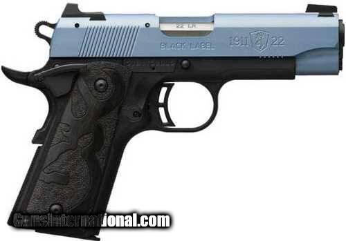 Description: Guns Listing ID: 1392892 Browning 1911-22 Black Label Semi-Automatic Pistol .22 Long Rifle 3.58 Barrel (1)-10Rd Magazine Polar Blue Cerakote Slide Black Finish SOLD Manufacturer: BROWNING Model: 1911 BLACK LABEL Caliber Info: .22 LR Condition: new Barrels: 3.6 BARREL Finish: POLAR BLUE/BLACK |