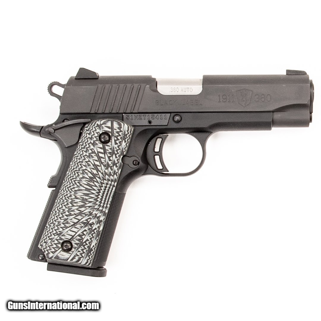 Description: Guns Listing ID: 1217554 This Browning Black Label 1911-380 features G-10 grips and black-out sights. Purchase includes the original case, owner‚‚s manual, and three 8-round magazines. Get the best bang for your buck when you get a Certified Used Firearm . When you see the Certified Used stamp on any of our firearms, you can be confident that you‚‚re getting exactly what you want – a gun only in very good to excellent condition and held to the highest quality standard. All Certified Used Guns come with a ‚‚no questions asked‚‚ return policy . PLUS, ALL CERTIFIED USED GUNS SHIP F SOLD Manufacturer: BROWNING Model: 1911 BLACK LABEL Caliber Info: .380 ACP Condition: Used - Non-Certified Barrels: 3.75 BARREL Finish: BLACK |
