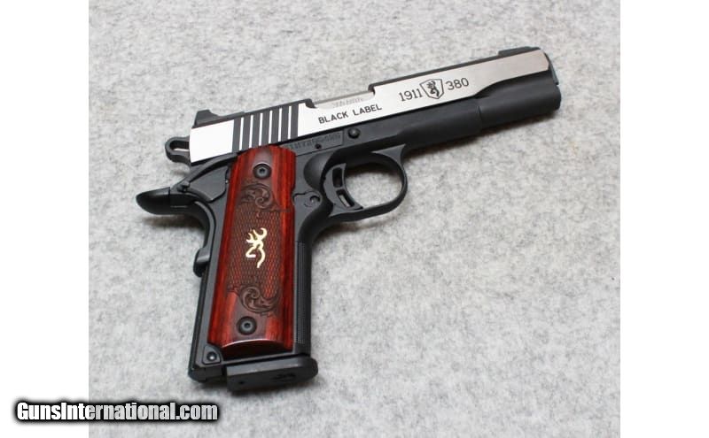 Description: Browning 1911 Black Label semiautomatic pistol chambered in .380 ACP. Comes with factory hard case and 2 magazines. .380 ACP SOLD Metal Condition: Very Good Wood Condition: Very Good Bore Condition: Bright And Clear Barrels: 4 Inch Butt Pad: Checkered Rose Wood with Gold Browning Medallion Weight: 1 lbs 3 oz Sights: White 3-Dot Item Location: Allen, TX |