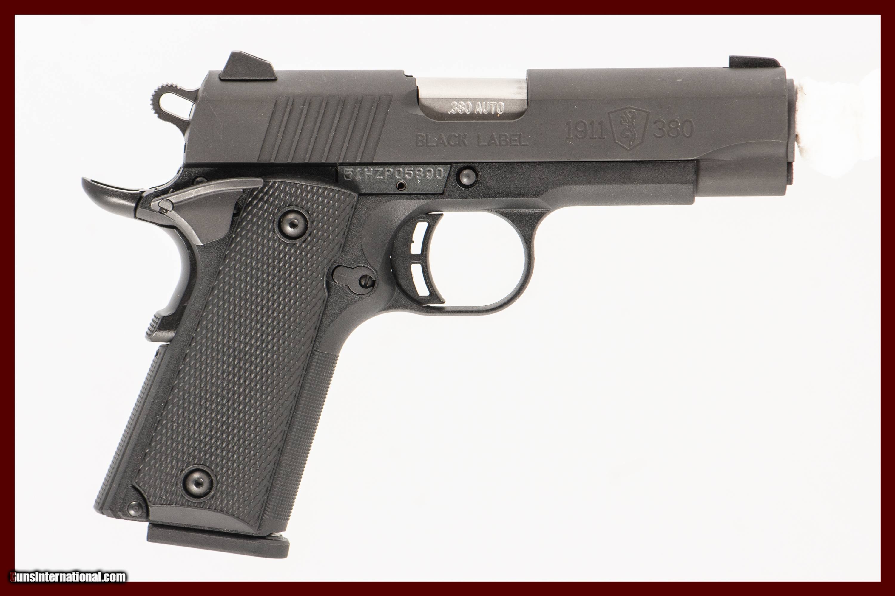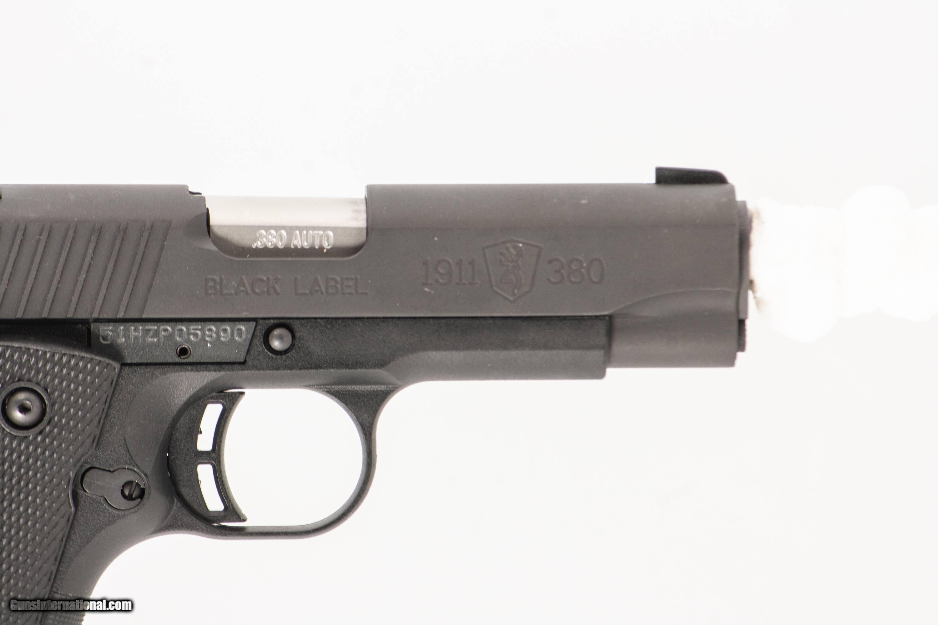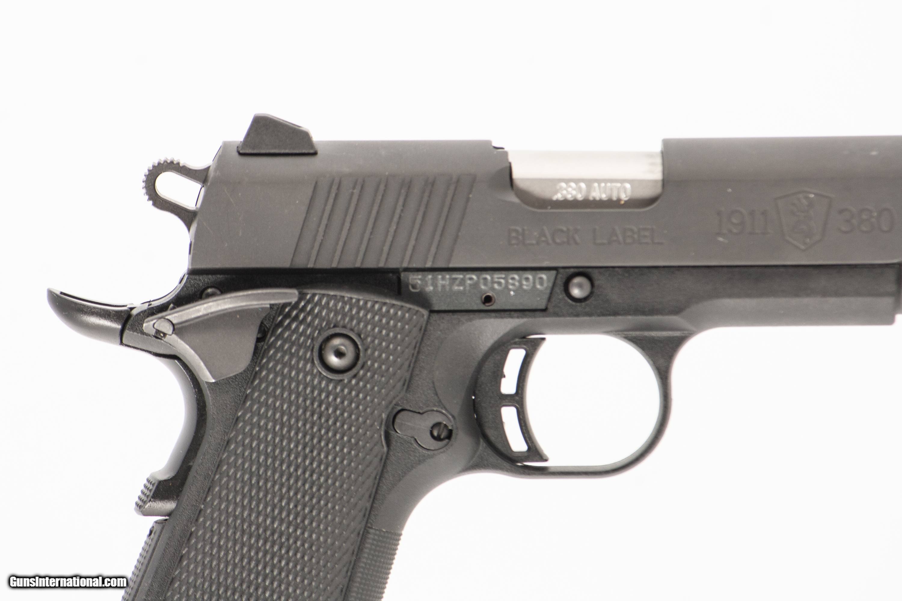 Description: BROWNING 1911 BLACK LABEL CHAMBERED IN 380ACP WITH A 3 3/4 INCH BARREL BRIGHT & SHINY BORE AND THE ORIGINAL CASE. THIS GUN IS IN EXCELLENT CONDITION AND IS COVERED BY DURY'S LIFETIME WARRANTY. FOR OUR GUN INTERNATIONAL CUSTOMERS ALL OF OUR FIREARMS CAN BE PURCHASED