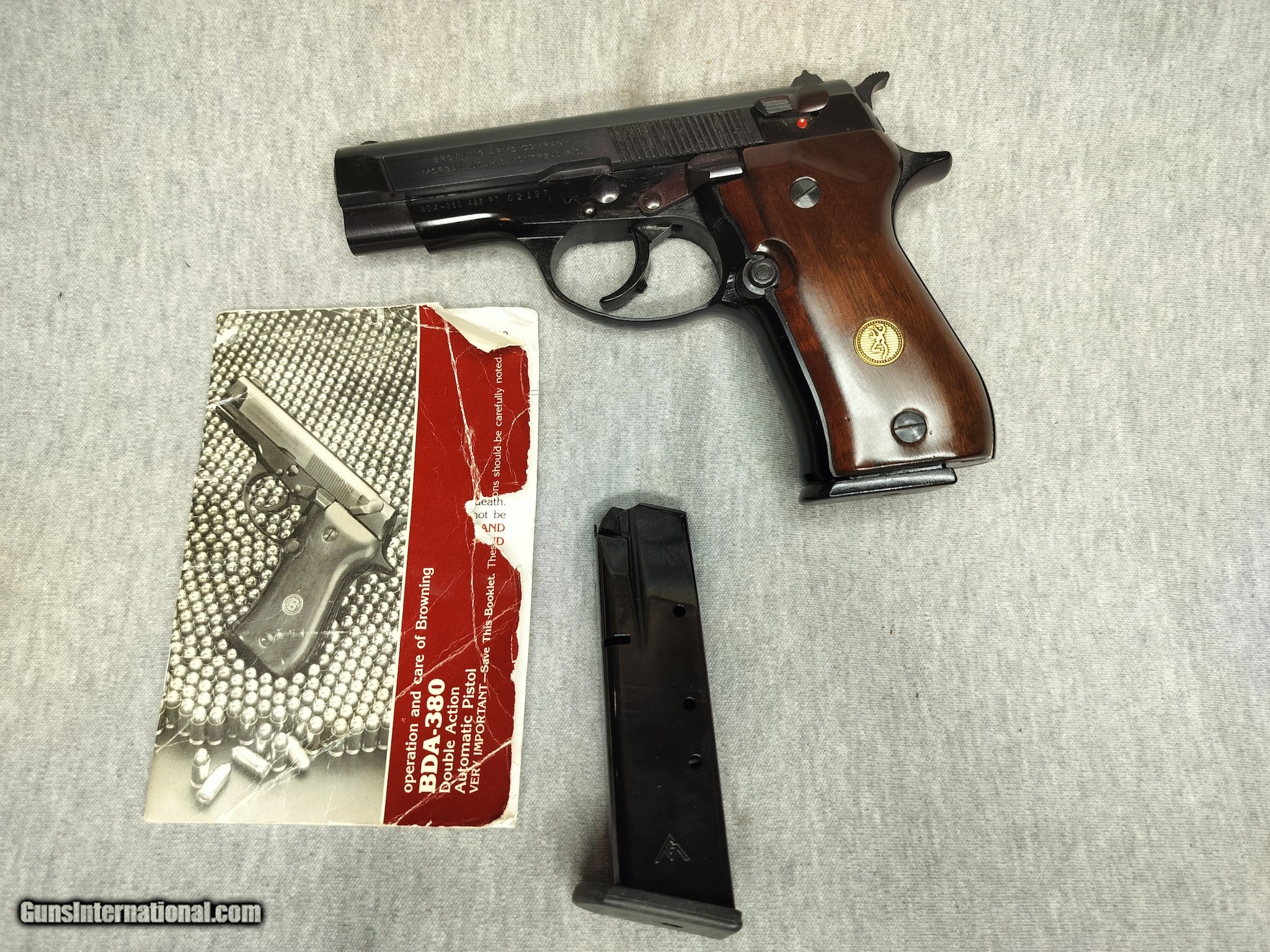 Description: Guns Listing ID: 1247237 GUN IS IN GREAT CONDITION, BUT IS MISSING THE LOGO ON ONE GRIP. HAS THE OWNERS MANUAL, AND 2 13RND MAGS SOLD Manufacturer: BROWNING Model: BDA - 380 Caliber Info: .380 ACP Condition: Used - Non-Certified Barrels: 3.75 BARREL Finish: BLUED |