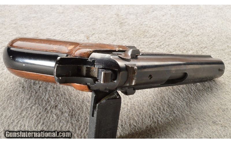 Description: If you are a fan of the Browning Hi-Power you will like this small version. The BDA is a compact .380 ACP pistol for single and double action. This nice little pistol has strong blue and a great bore. The grips are dinged up but sound and solid. All in all this is a very nice pistol and will make a great carry gun. .380 ACP SOLD Chambers: Semi-auto 13+1 rounds. Metal Condition: Very good with a few tiny marks. Wood Condition: The wood grips have quite a few dings and dents. Bore Condition: Bright and shiny. Barrels: 3 3/4" blue with sights on the slide. Triggers: Single blue for single and double action. Weight: 25 Oz. Sights: Raised notch rear and a small half moon front. Item Location: Owatonna, MN |