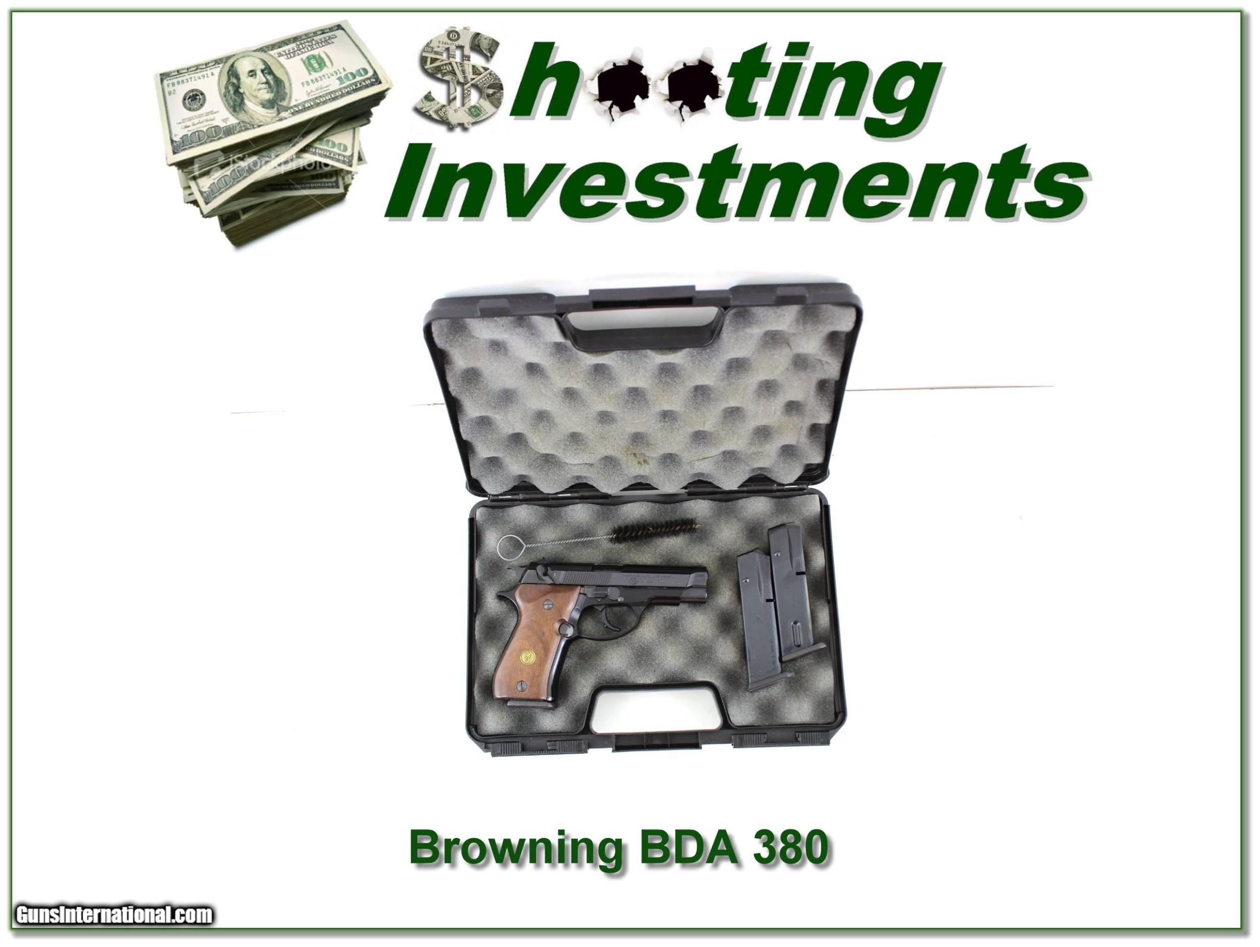 Description: This is an Italian made Browning BDA 380 in 380 ACP. It looks unfired to me. I find just a couple light storage marks and it comes with the 3 magazines as seen! I am selling this one on consignment and as such lay-a-way can’t be used. It does of course have the standard 3-day inspection. Shipping and insurance is $39. Please email me with any questions or larger pictures. (Consign your quality firearms with Shooting Investments for only 12%! Let me know if you have any you would like to sell!) 21-1052 Payment: Payment is by Money Order, Cashiers Check or Personal Check. I can now also accept Credit Cards (MasterCard, Visa, Discover & American Express) with a 3% convenience fee. Shipping: The shipping charge will be listed in each description. It is $39 for most firearms. Some heavy guns or those insured for over $2000 will be higher. Shipments to Alaska and Hawaii are higher because air shipment is required. Most firearms are shipped on Tuesday and Thursday and usually in 5 days of receipt of payment. We package all shipments carefully and insure them. Optics are shipped Priority Mail and most other non-firearm shipments are shipped First Class. Returns: Our return policy is simple. If for any reason you are not pleased with your purchase, you may return your item for a full refund of purchase price. Ammunition cannot be returned. It is important to us that you are happy. Guns cannot be fired or dissembled before returning them and they must be returned in the same condition as received. Notification of a return must occur with-in 3 days of receipt at your dealer. Shipping, convenience and dealer fees are not refundable and are the responsibility of the buyer. Lay-a-way: If needed, we offer a 60 day lay-a-way option on most firearms. It is 1/3 now, 1/3 in 30 days and 1/3 in 60 days. Lay-a-way firearm sales are final and if not completed the first payment cannot be returned. Consigning your firearms with Shooting Investments: We will help you get top dollar for your firearms. While most local guns shops charge 20% or more, our fee is only 12% with a minimum of $75. At your local gun shop it might take months to sell. Selling on-line provides instant access to thousands of interested buyers. You won’t find any other on-line dealer willing to sell your firearms for only 12% or listing every gun on 3 separate s. Selling through an House typically costs the seller 15% and the buyer an addition 15% (so 30%) and you have to wait several months to sell and longer to receive funds. If properly priced, we will sell your firearms in a few weeks. Send us an email or give us a call and we’ll explain how easy it is for you to get top dollar. Trading: Trading for use is really just buying your gun to re-sell. If you have a gun you want to trade, please email a picture and we will let you know what we can give or it. You will always get more if we sell it for you on consignment. Help for California Buyers: We are happy to ship to California. It is the buyer’s responsibility to make sure any item you buy is legal in your state. We are also happy to help with your purchase of a firearm from someone other than us. If you see a gun you would like to buy but the seller can’t or won’t ship to California they can ship to use and we’ll then ship it to your California dealer. The cost for this service is only $30 + shipping. Let us know if we can help! SOLD |