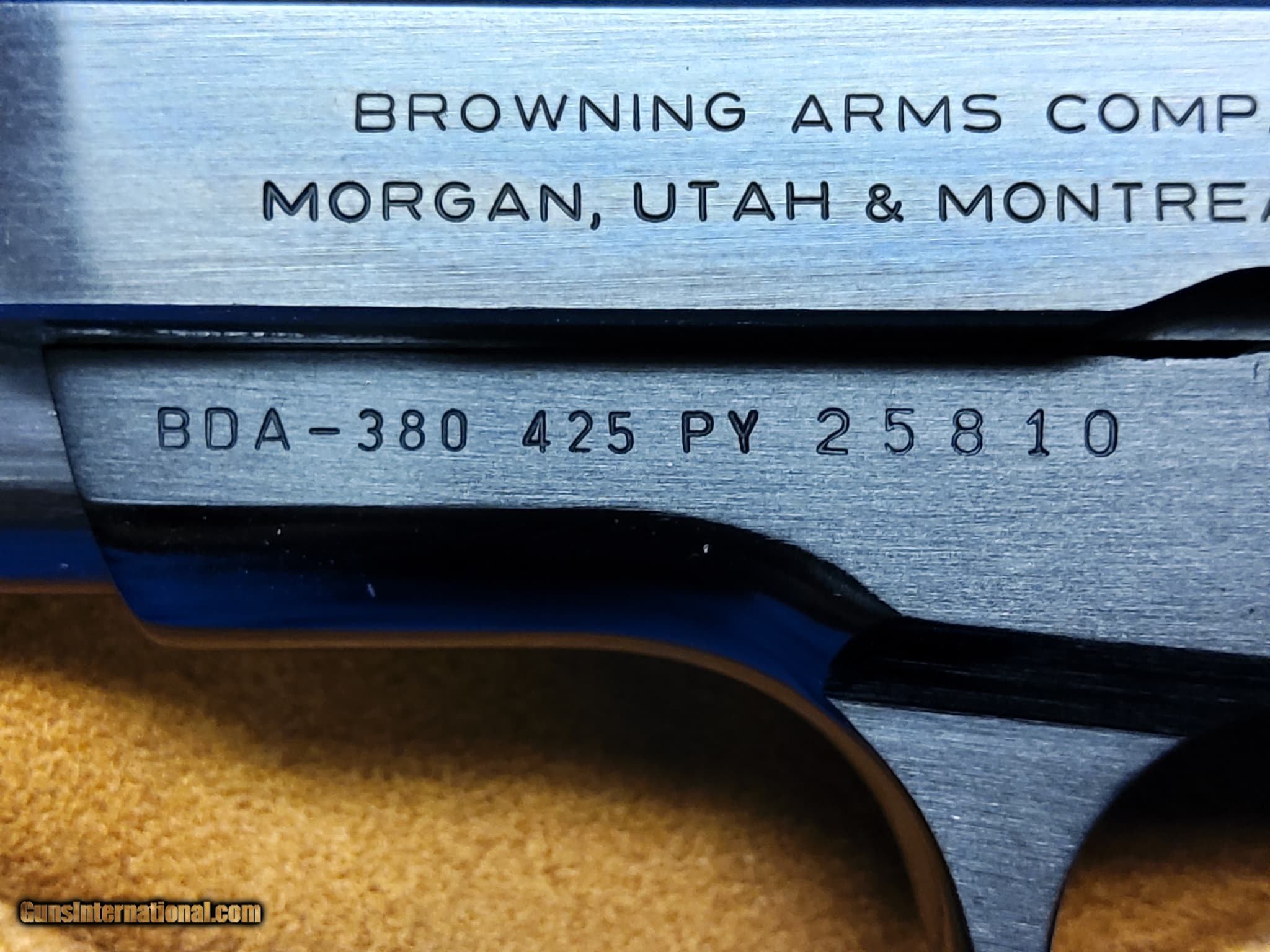 Description: Guns Listing ID: 836714 The Browning BDA380 is a compact and reliable semi-automatic handgun that was first introduced in the 1980s. This firearm boasts a sleek and ergonomic design, with a lightweight aluminum alloy frame and comfortable grips that provide excellent control and handling. The Browning BDA380 is chambered in .380 AUTO, making it an excellent choice for personal defense and concealed carry. It features a double-action/single-action trigger with a smooth pull, a magazine capacity of up to 13 rounds, and a low profile, fixed rear sight for precise targeting. This firearm is an excellent choice for anyone looking for a reliable and compact handgun for personal protection. Whether you‚‚re a first-time gun owner or an experienced shooter, the Browning BDA380 is a top-performing firearm that won‚‚t disappoin SOLD Manufacturer: BROWNING Model: BDA-380 Caliber Info: .380 ACP Condition: Used - Non-Certified Barrels: 3.8 BARREL Finish: BLUE |