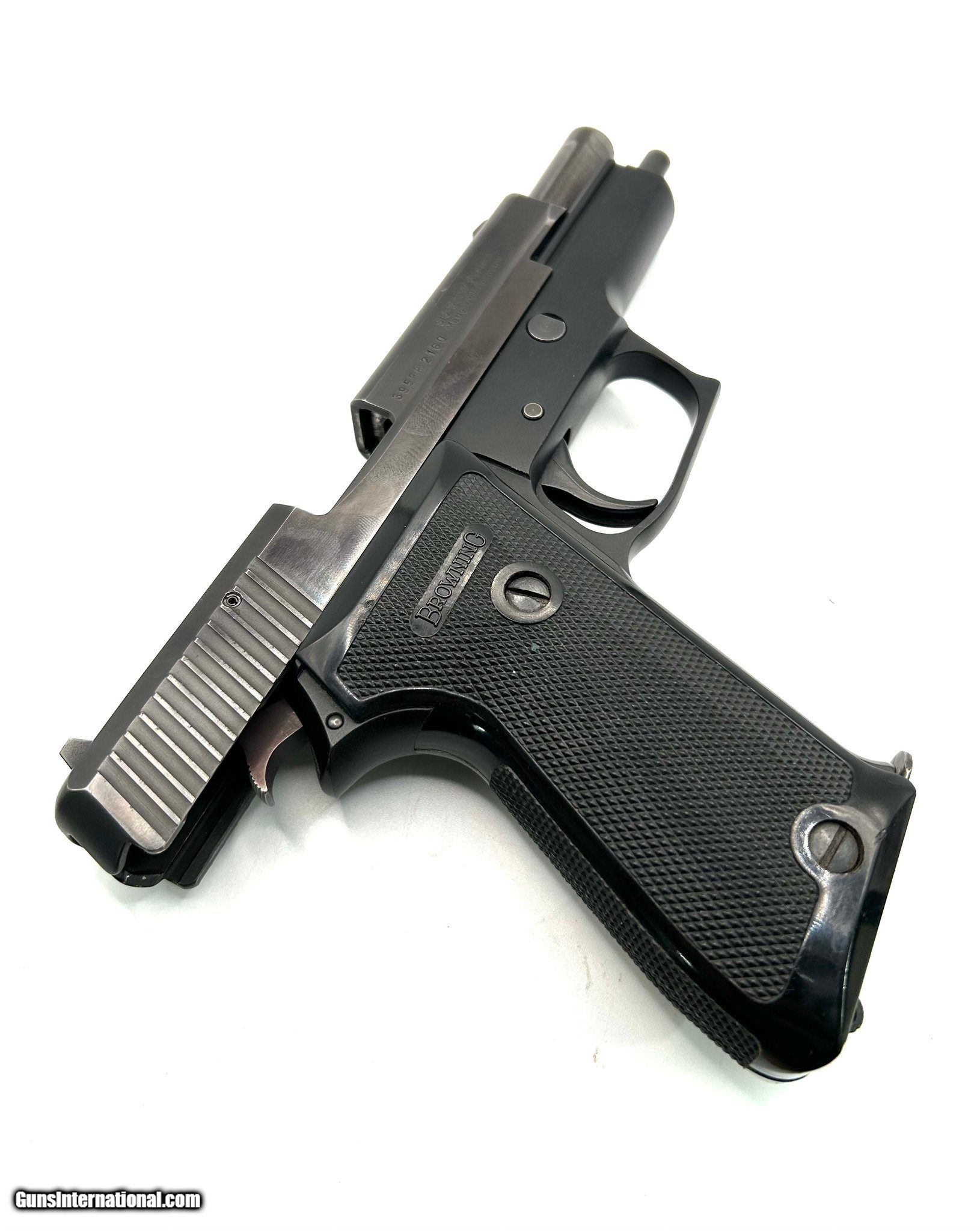 Description: Guns Listing ID: 518315 The Browning BDA .45 Auto was a model of the Sig Sauer P220 pistol, marketed by Browning in the US in the late 1970s. It was chambered in the .45 ACP cartridge. The BDA featured a double-action/single-action (DA/SA) trigger mechanism, a heel magazine release, and a decocker.Great condition for its age and will come with one 8-round magazine. SOLD Manufacturer: BROWNING Model: BDA Caliber Info: .45 ACP Condition: Used - Non-Certified Barrels: 4.5 Action: SEMI AUTOMATIC Finish: black |