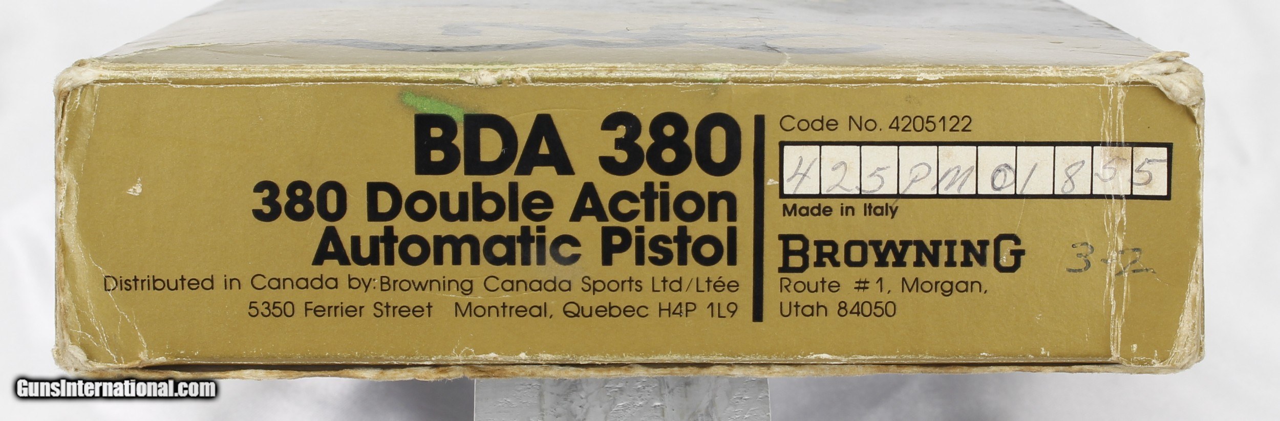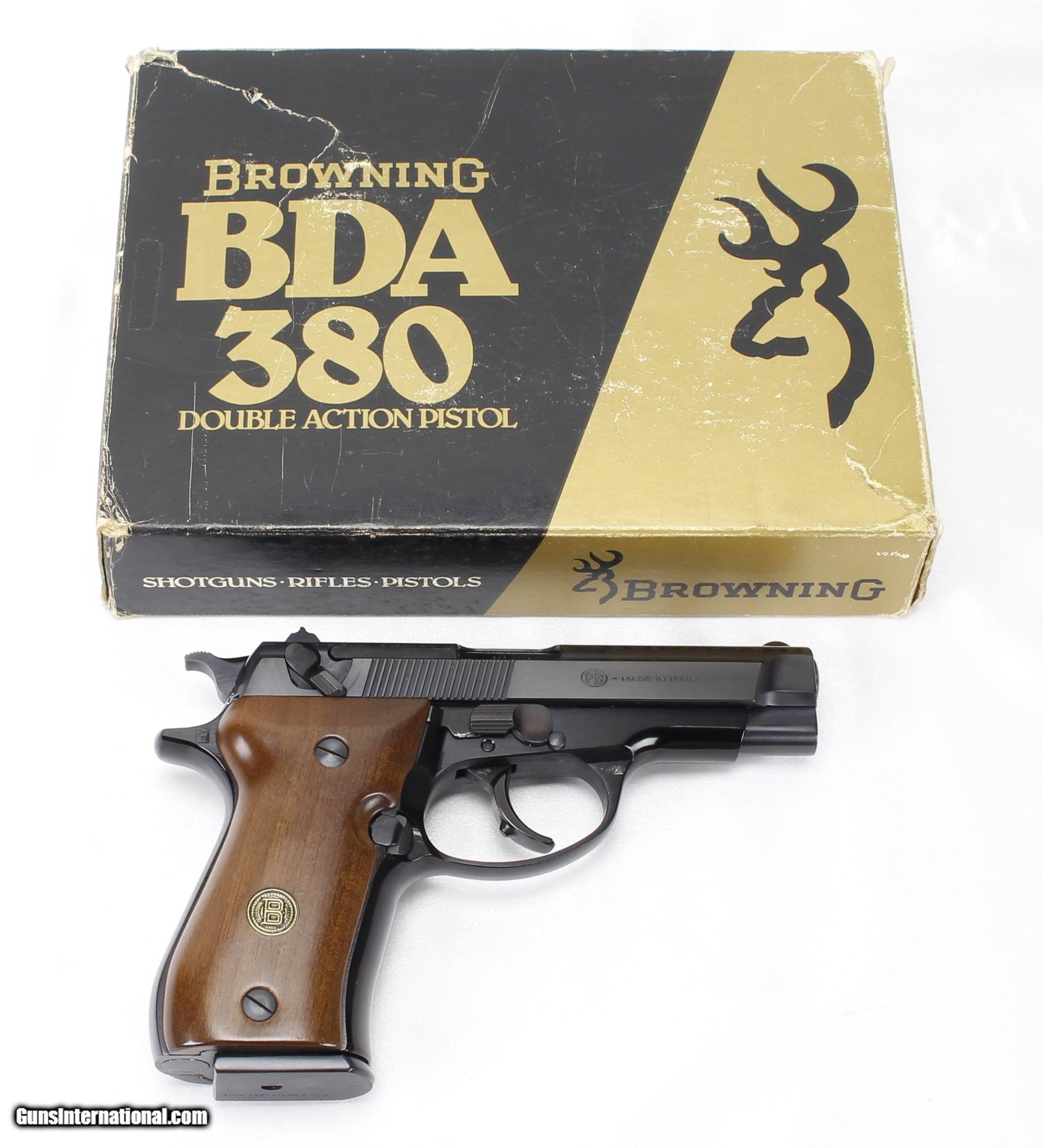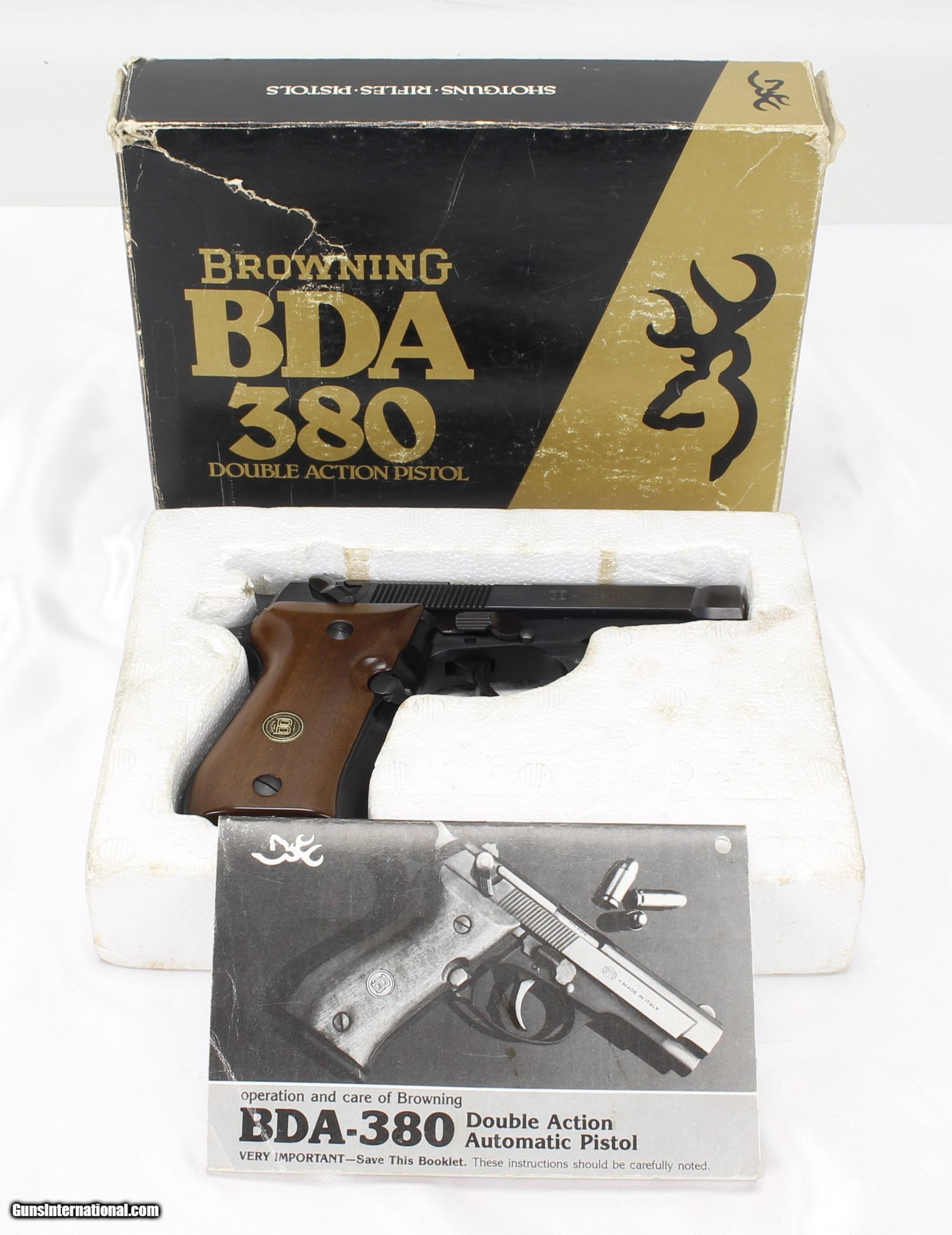 Description: Browning BDA Semi-Auto Pistol in .380ACP. SN #425PM01855. Mfg. in 1980. 3 3/16"barrel with an excellent bore. Blued metal is in excellent condition also, rated at 98%. The smooth wooden grips are in very good condition, rated 90%-95% with some handling marks on the left side grip. Produced by Beretta for Browning. Includes the original box with manual. More pictures available upon request. SOLD Manufacturer: Browning Model: BDA Serial Number: 425PM01855 Barrel Length: 3 3/16 Caliber Info: .380ACP Condition: VG Metal Condition: Excellent Wood Condition: VG Bore Condition: Excellent Finish: Blue |