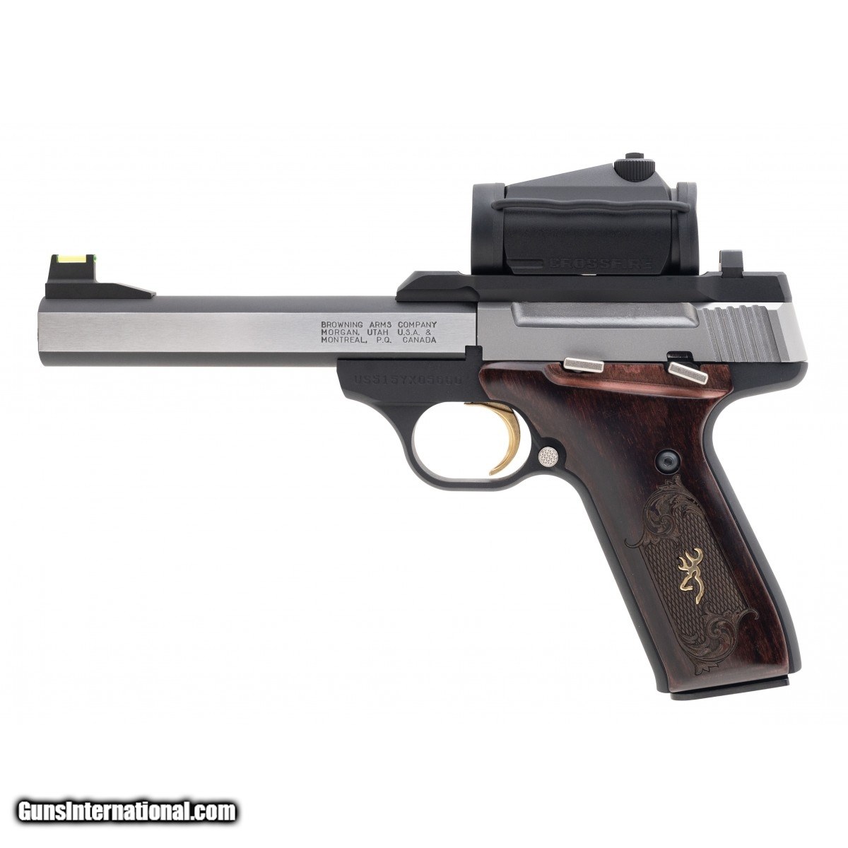 Description: " Rimfire semi automatic handgun with 5.5"" barrel, fiber optic front sight, adjustable rear sight, Vortex Crossfire red dot and laminated rosewood grips. NEW. UPC: 023614853947 (STOCK PHOTO) SOLD |