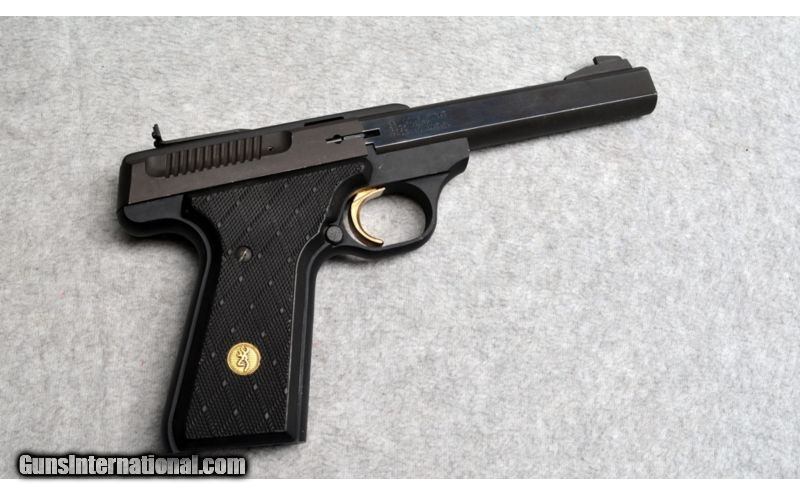 Description: The Browning Buck Mark is a semi-automatic pistol, made by the Browning Arms Company and chambered for the .22 Long Rifle cartridge. It has been produced since 1985. The Buck Mark replaced both the Challenger and International pistol models. SOLD Manufacturer: Newer production. Caliber Info: .22 Long Rifle Metal Condition: Very good with few handling marks. Wood Condition: Checkered composite hard plastic grips with Browning Buck Mark medallion. Bore Condition: Bright and shiny. Barrels: 5 1/2 slab side blued barrel. Triggers: Single action gold colored factory trigger. Sights: Blade front, adjustable rear. Extras: Comes with one magazine. Item Location: Hazelwood, MO |