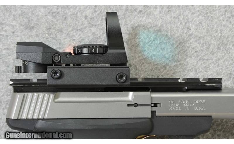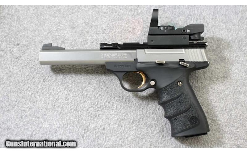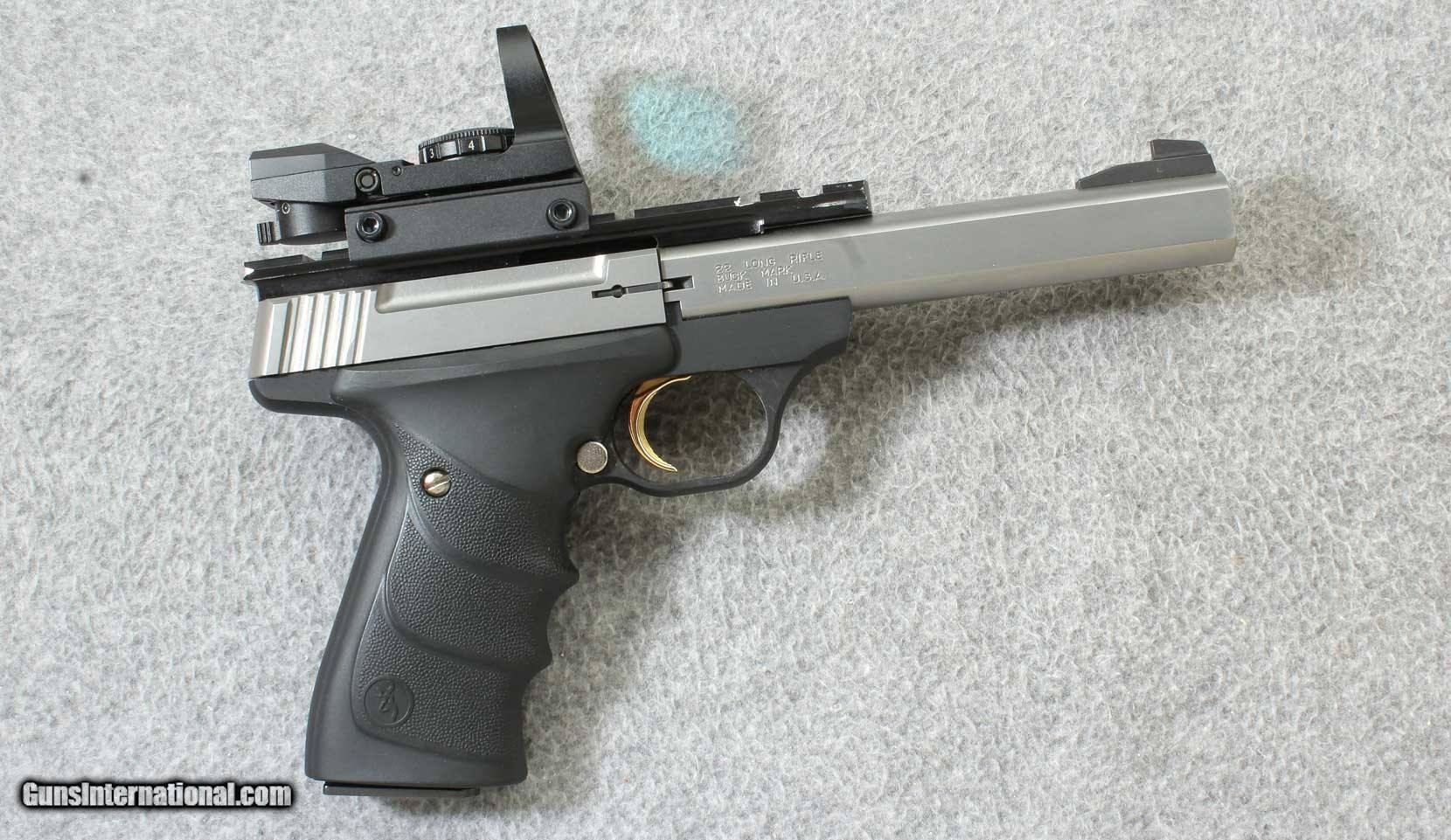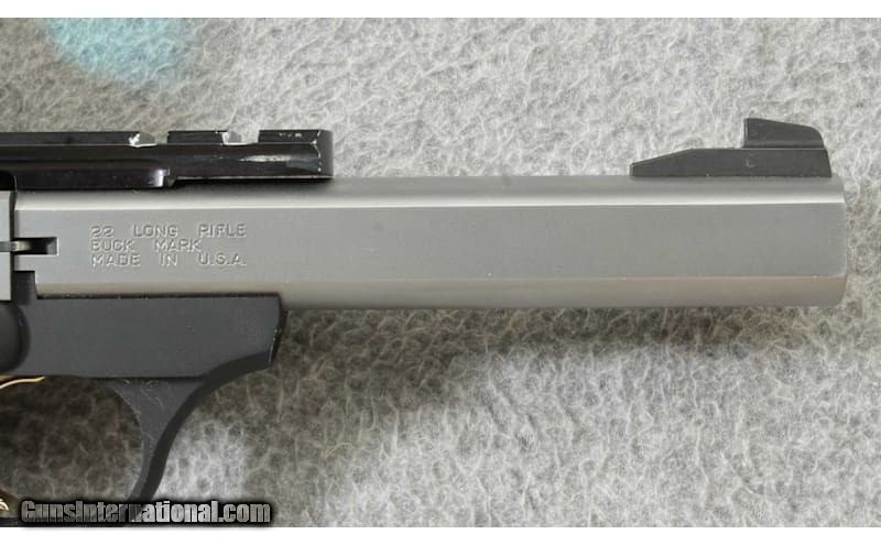 Description: As one of the most proven .22 rimfire designs, the Browning® Buck Mark Semi-Auto Rimfire Pistol sets a high bar for quality, reliability, and accuracy. Easy grip grooves and slide cocking ears at the rear of the slide ensure a secure grip when racking the slide. Straight blowback action offers simplicity and reliability. Solid aircraft-grade 7075 aluminum alloy comes CNC-machined to exacting tolerances. Rely on the crisp single-action trigger, hand-reamed chamber, and target-crowned barrel for consistent accuracy. The magazine release is positioned adjacent to trigger guard ensure convenient operation. Magazine removal disconnects trigger for added safety. Other details include a large, manual thumb safety. Manufactured 2015. .22 Long Rifle SOLD Metal Condition: Very good with wear on the sharp edges Bore Condition: Very good with signs of use Barrels: 5.5 inch slab sided barrel Triggers: Single action Weight: 37 oz. Sights: "Browning optic, Patridge blade front Item Location: Lehi, UT |