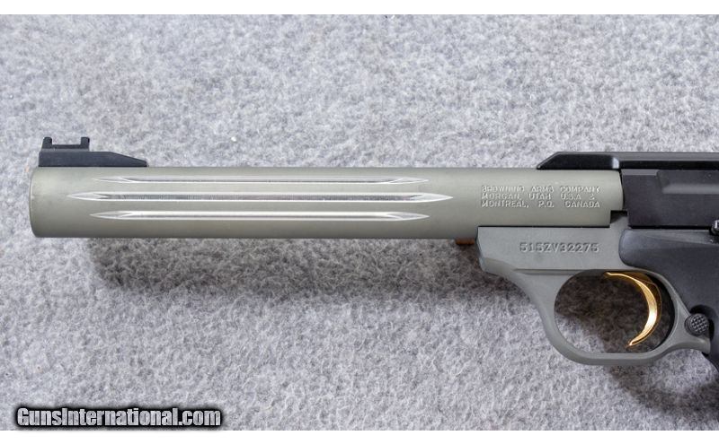 Description: The Browning Buck Semi-Auto Rimfire Pistol gives you a reliable and accurate .22 pistol, designed with emphasis on function. A textured surface provides a secure hold in any type of shooting environment. A fluted, alloy sleeved, bull barrel balances the p .22 Long Rifle SOLD Metal Condition: Excellent with a few marks Barrels: "7 1/4 inch fluted, alloy sleeved barrel with matte gray finish Triggers: Gold plated trigger Sights: "Adjustable rear sight, front sight is missing fiber optic stick Item Location: Lehi, UT |