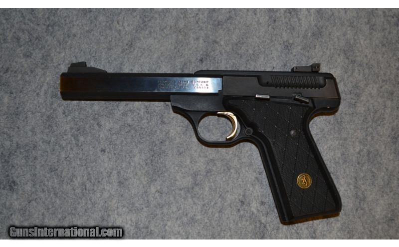 Description: This is a very nice target Browning Buckmark. It has a nice heavy barrel that makes it extremely easy to shoot. The grips have a nice gold browning medallion on the center of the grip. The chambering is smooth and easy to work. All in all this is a nice gun for anyone looking for a target .22 or for anyone just looking for something fun and easy to shoot. SOLD Caliber Info: .22 LR. Chambers: Semiautomatic. Metal Condition: Good. Bore Condition: Good. Barrels: 5 1/2" Slab side heavy. Triggers: Single gold color. Stock: Black synthetic grips. Weight: 30 OZ. Sights: Ramped front and adjustable rear. Extras: One magazine. Item Location: Louisville, KY |