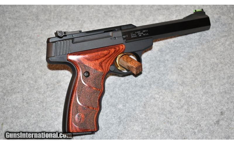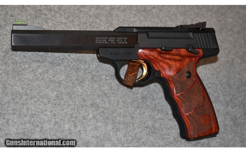 Description: .22 Long Rifle SOLD Metal Condition: Nice. Minor marks on barrel. Wood Condition: Very nice wood grips Bore Condition: Excellent Barrels: 5 1/2 Triggers: Browning gold Weight: 1 Lb 14 Oz Sights: "Fiber optic front, adjustable rear Item Location: Billings, MT |