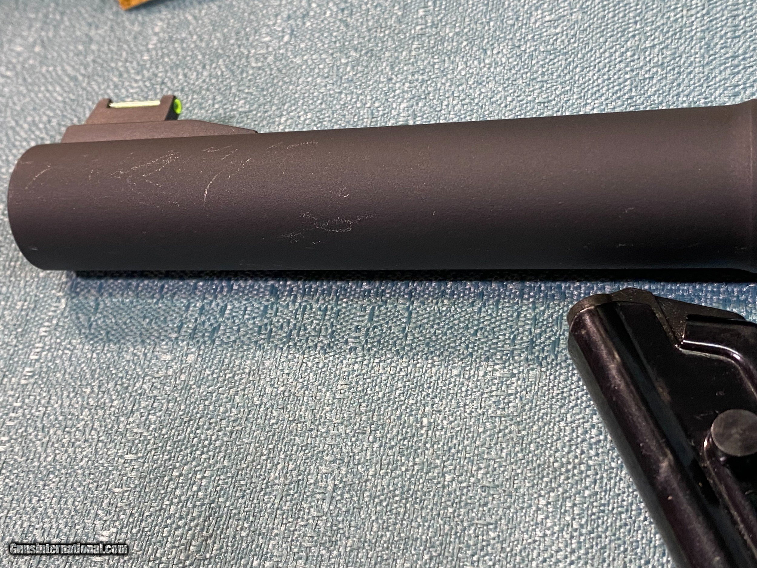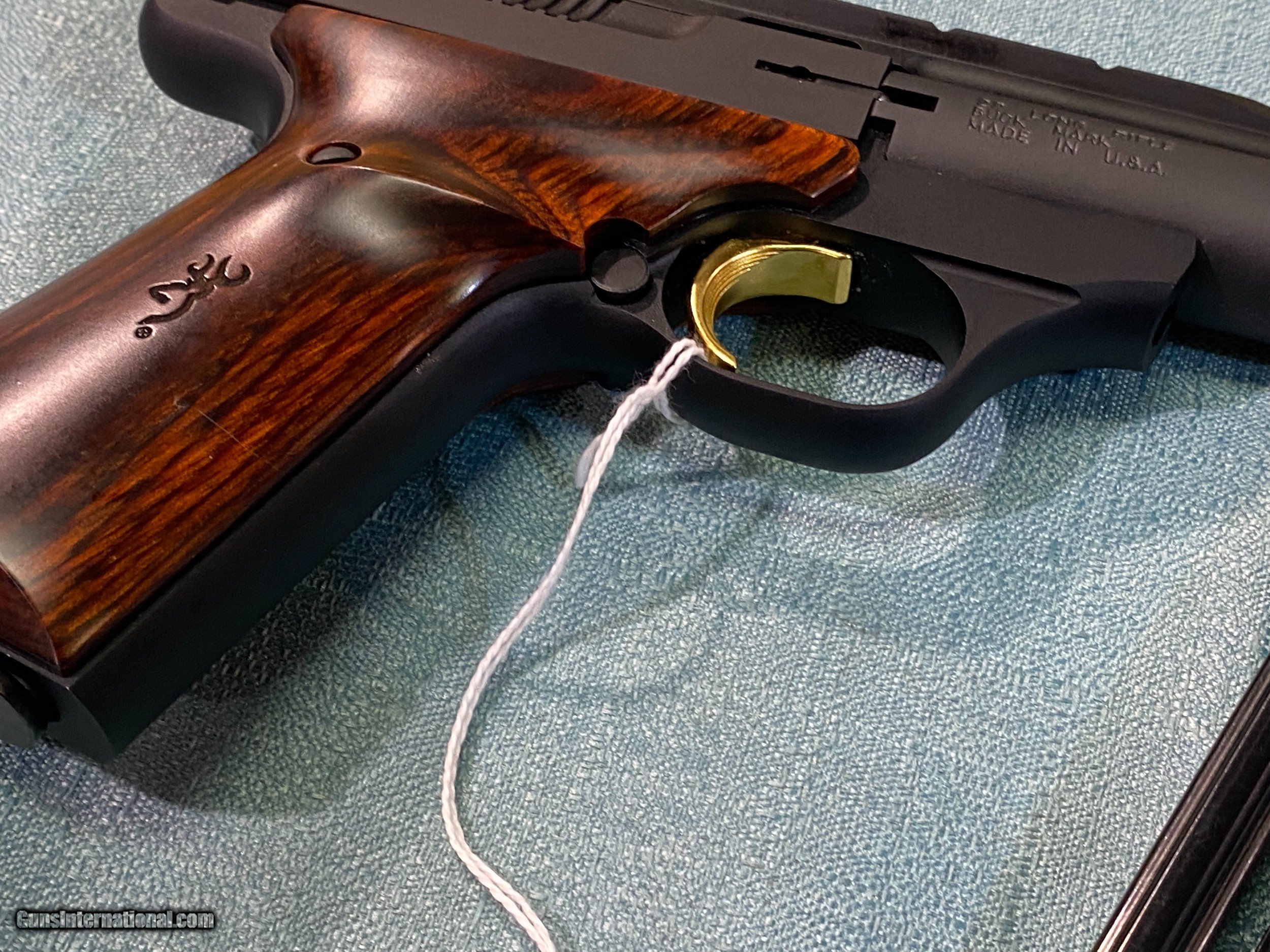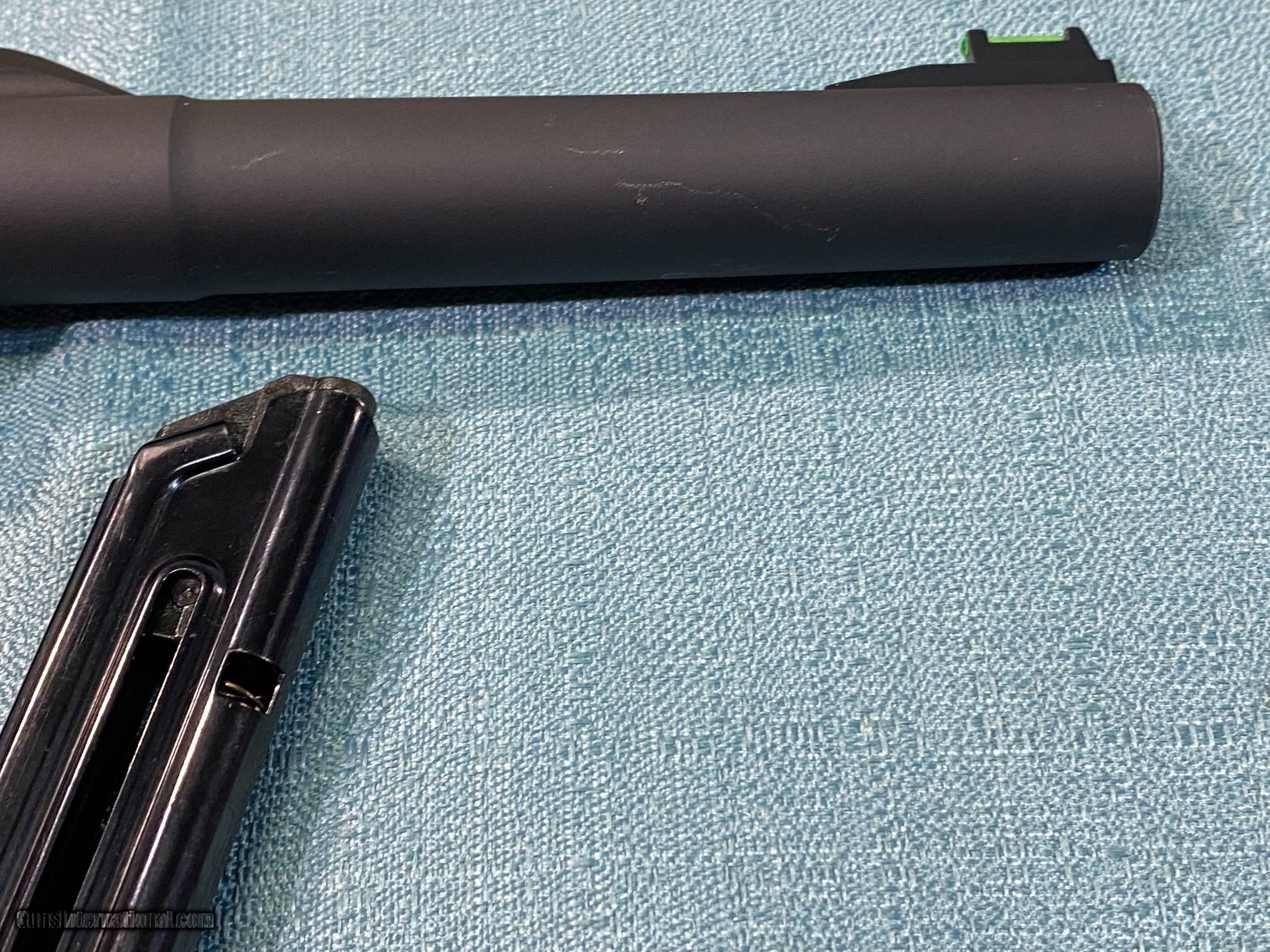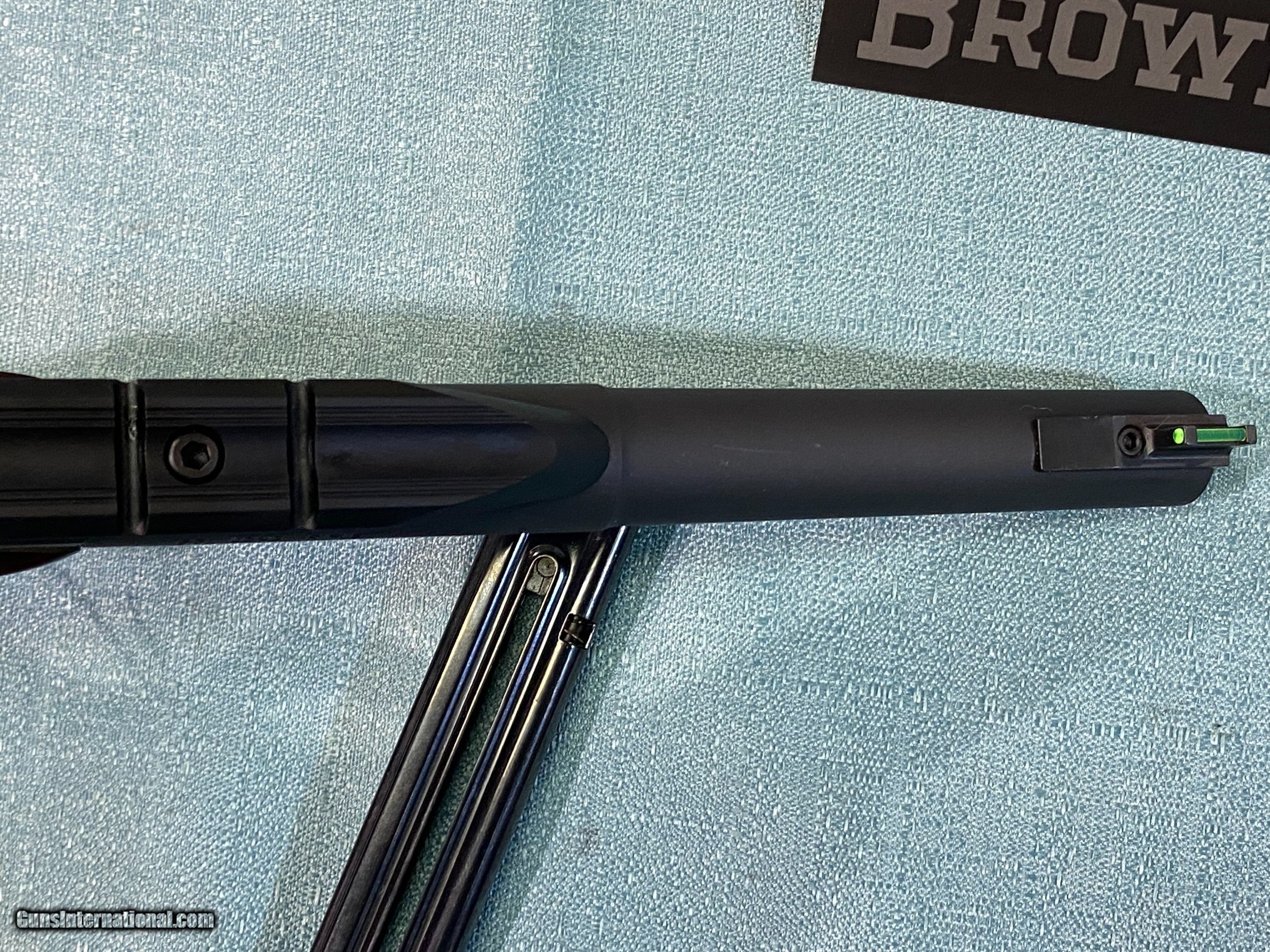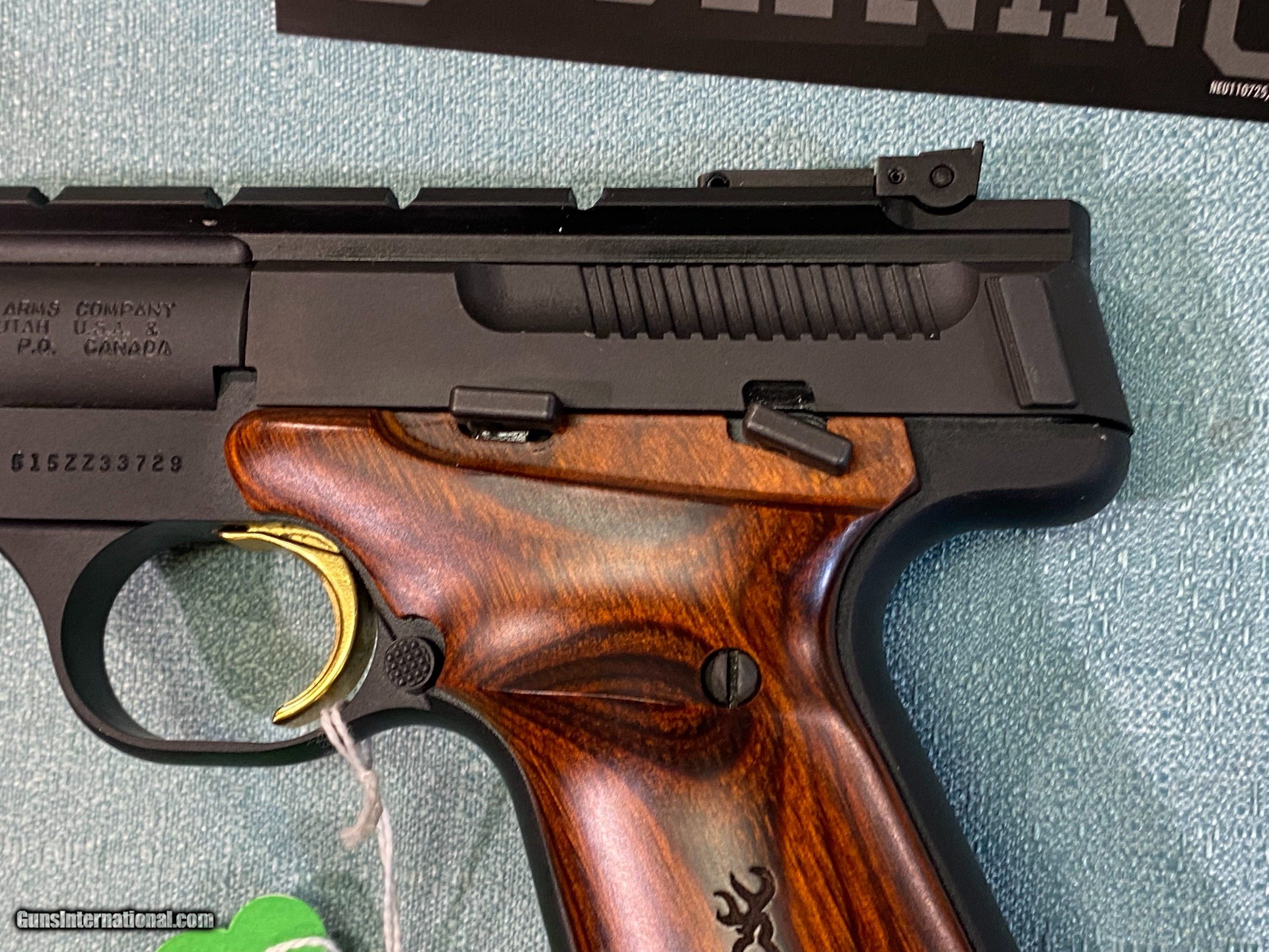 Description: This is a lightly used Browning Buckmark hunter. This pistol comes with the original owners manual and all else pictured. It has a Mirror finish bore. The barrel has a few light marks they don't look to be through the finish buy show light gray against the black matte finish on the pistol. Has a high vis front sight and nice dark wood grips. I'm not sure of the wood type. Looks close to rosewood. It has a 7-1/4" Barrel. Comes with (2) 10 rd magazines Maine Residents add 5.5% sales tax SOLD Handgun Caliber: .22 Long Rifle Manufacturer: Browning Model: Buckmark Serial Number: 515ZZ33728 Barrel Length: 7-1/4 Condition: Very Good Metal Condition: Very Good Wood Condition: Very Good Bore Condition: Very Good Action: Semi auto Item Location: Buxton Maine |
