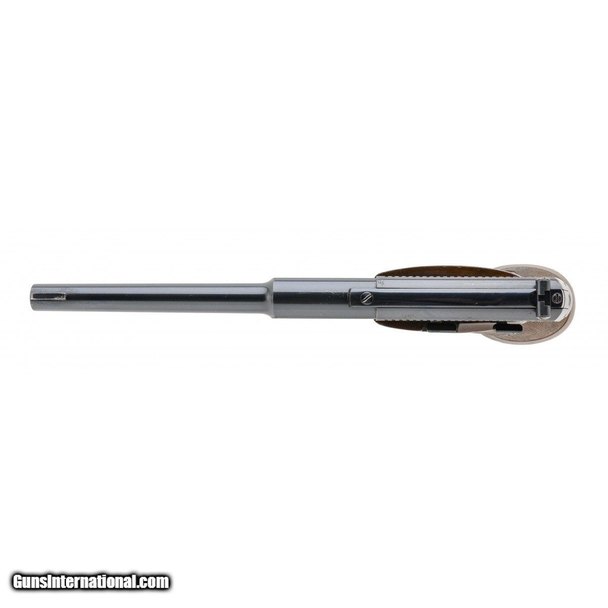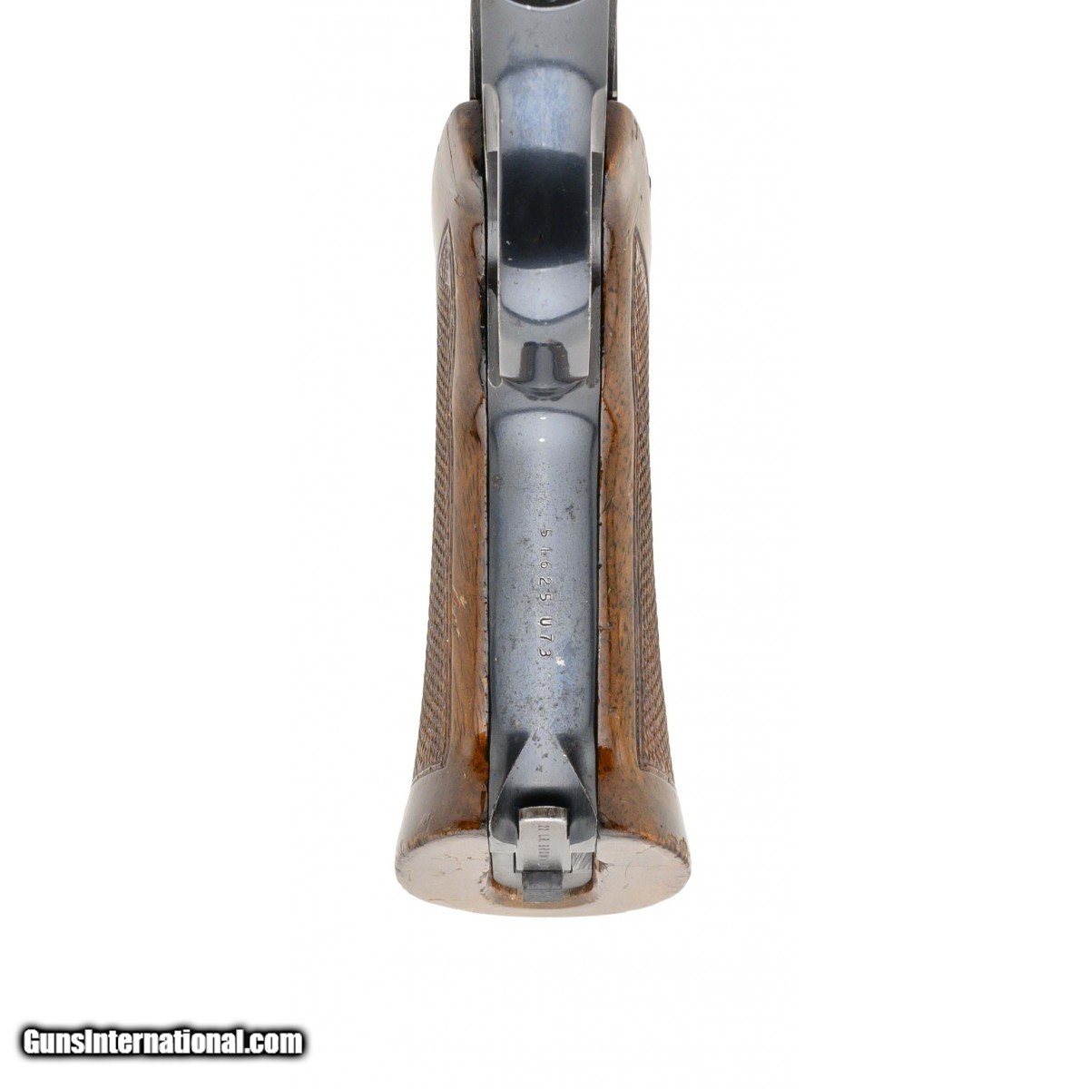 Description: " SN: 51625U73. Made in 1973 with a 6.75-inch barrel chambered for the .22LR cartridge. Overall condition is very good with original factory finish present on the metallic parts & only limited discoloration & handling wear. Comes with original wood one-piece target grips & a 10-round magazine. Consignment SOLD |