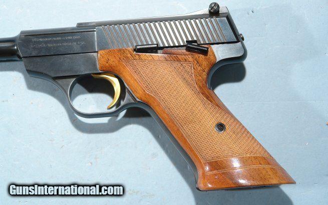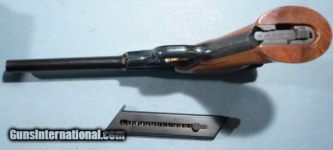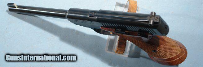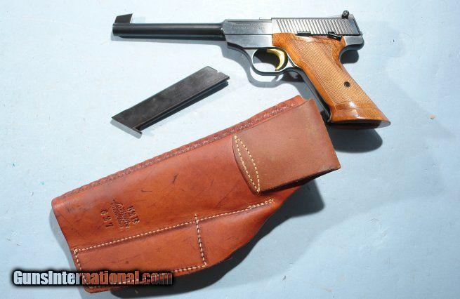 Description: BELGIUM BROWNING CHALLENGER .22LR CAL. 6 ¾” PISTOL W/HOLSTER & EXTRA MAG. Unused about new condition. Looks unfired. Extra factory magazine and nice Lawrence basket weave pattern holster. SOLD |