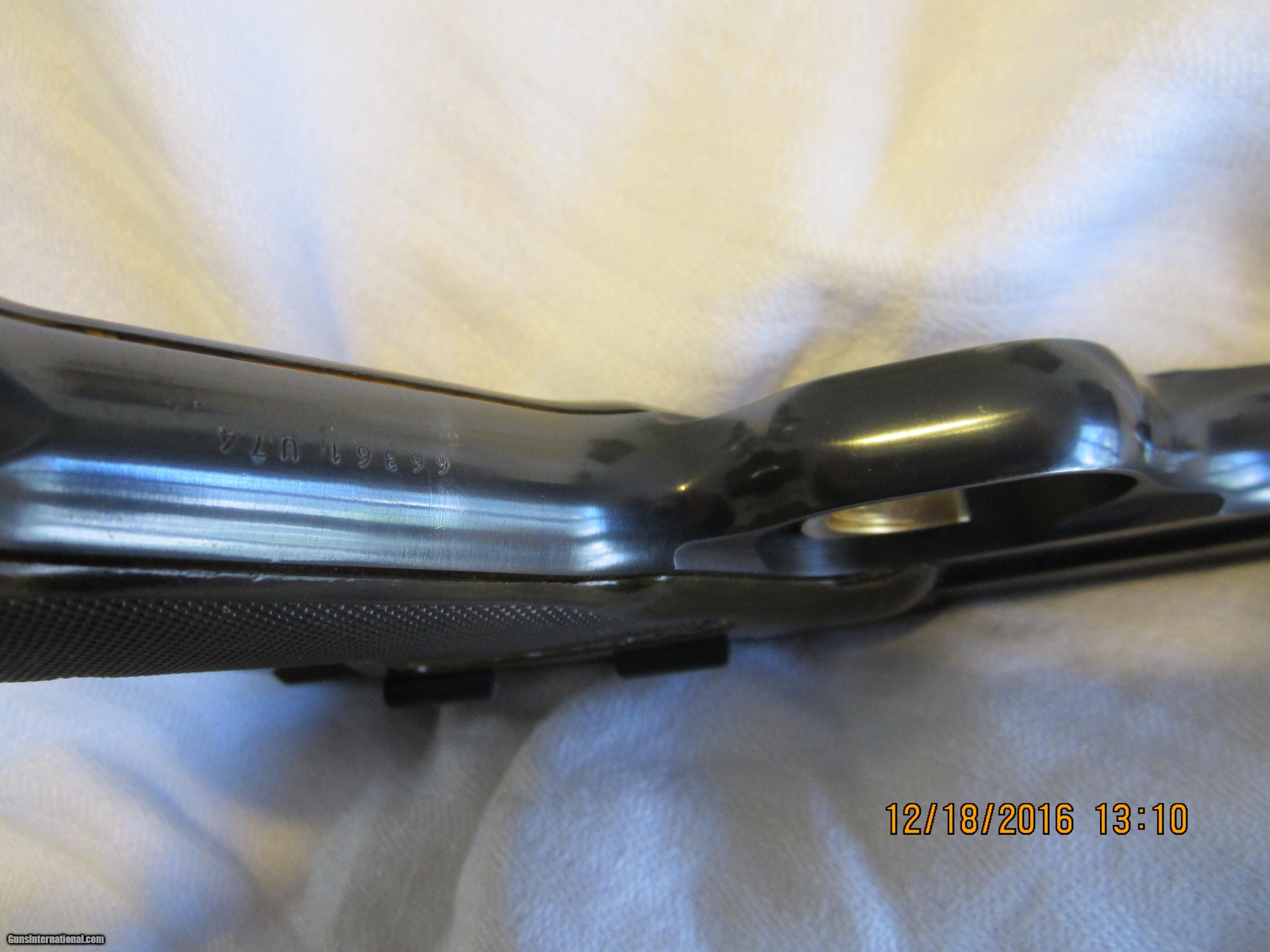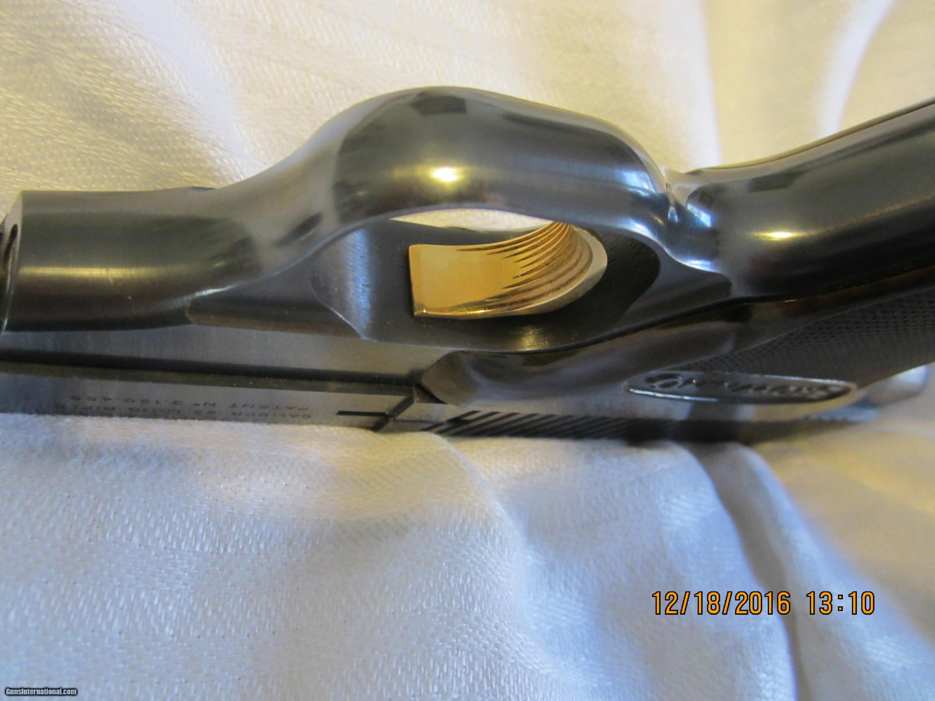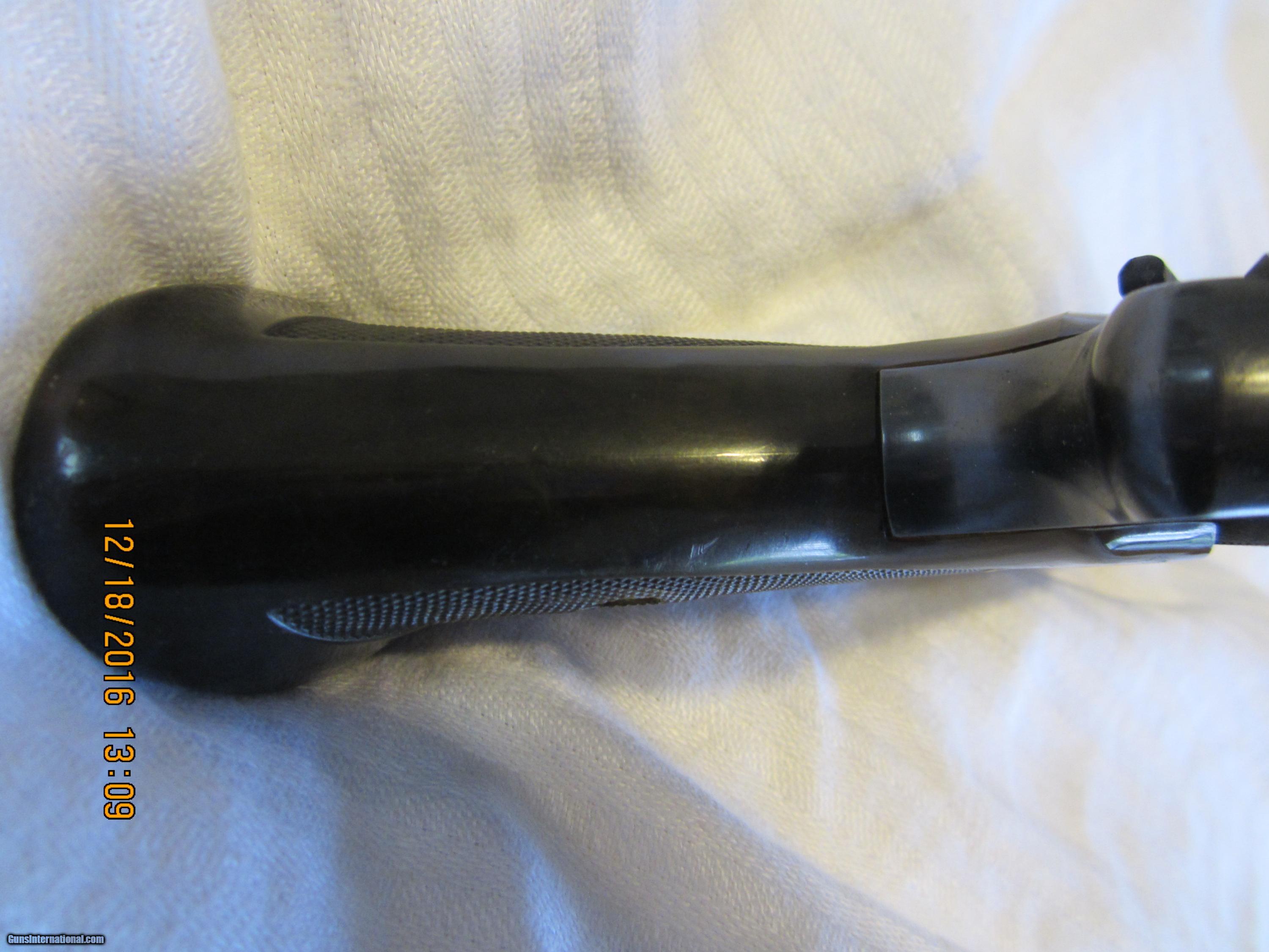 Description: A beautiful Browning Challenger made in 1974 in Belgium .22 LR caliber with a 4& 1/2 " barrel all in 98% condition. The wrap around grips are in excellent condition and were made of a simulated wood man made material which was only used for one year. (which should increase collector interest).It works as designed and has not been fired very much. The trigger is GOLD plated. The "BROWNING" name appears on both sides of the grips.The rear sight is adjustable. SOLD |