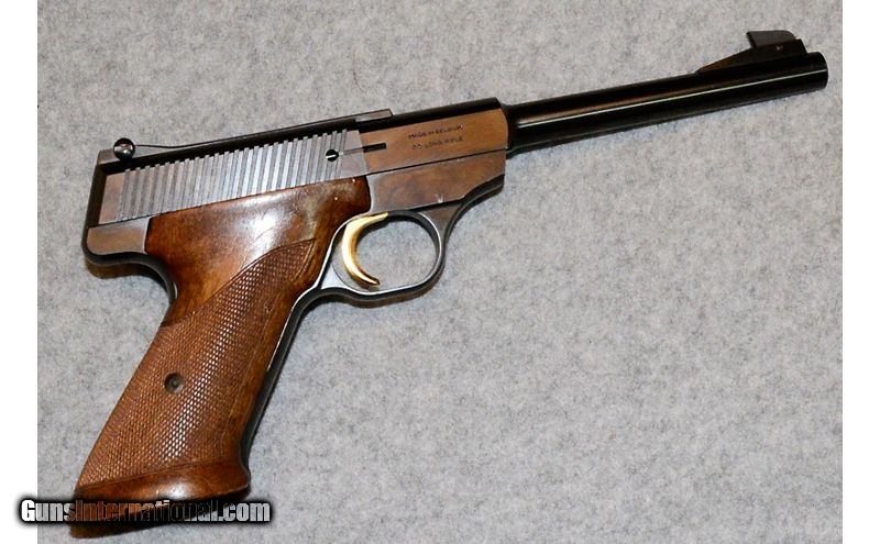Description: Made in 1968 .22 Long Rifle SOLD Curio/Relic: Yes Metal Condition: "Very Good, minor handling marks with good markings. Wood Condition: "Very good, minor handling marks with some smoothing to the checkering Bore Condition: "Very Good, clean and shiny Barrels: 6 3/4" Barrel Triggers: Wide target trigger Fore End: Wrap around walnut target stocks Weight: 2lbs 6oz Sights: Serrated front sight with adjustable rear sight Item Location: Lacey, WA |