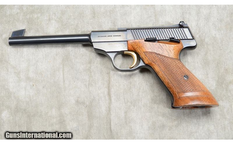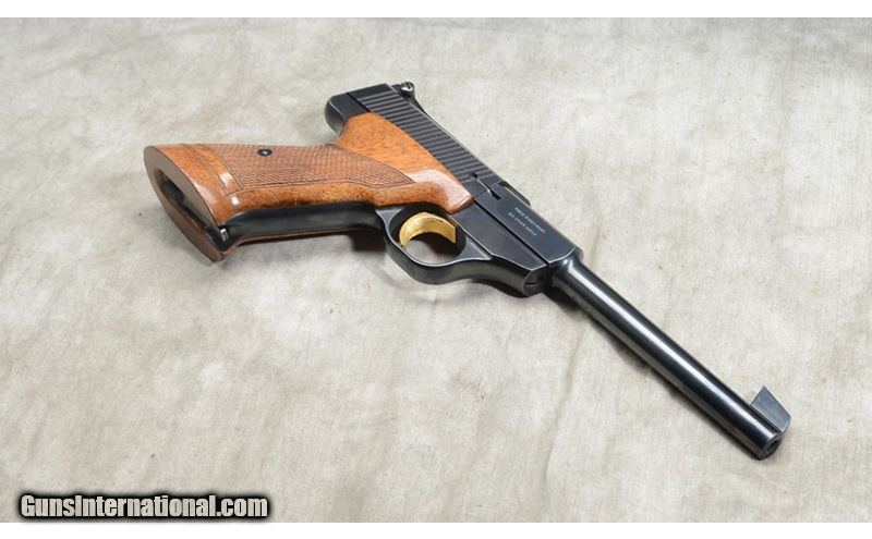Description: This is a well-maintained Challenger from 1967 and features gold trigger, light contour barrel, sculpted walnut grips and comes with case and two magazines. This one doesn't appear to have been shot much and is in great condition. .22 Long Rifle SOLD Chambers: 10 Metal Condition: Excellent. Wood Condition: Excellent. Bore Condition: Shiny and bright. Barrels: 6-3/4 INCH Triggers: Factory single action trigger. Butt Pad: Sculptured and checkered wrap-around walnut grip. Weight: 37 oz. Sights: Patridge type post and adjustable notch. Item Location: Rogers |