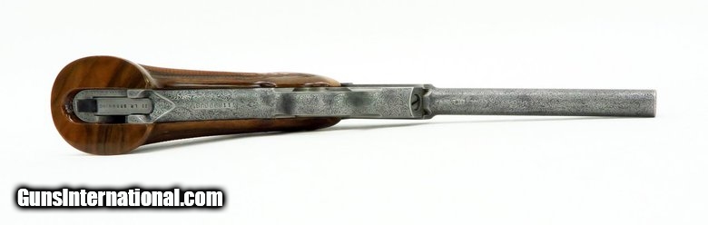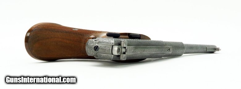 Description: Browning Challenger .22LR caliber pistol. Belgian made factory engraved deluxe model has full coverage fine scroll, French gray finish and carved grips. A beautiful piece in excellent condition with soft case.
