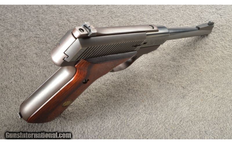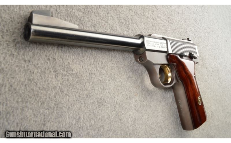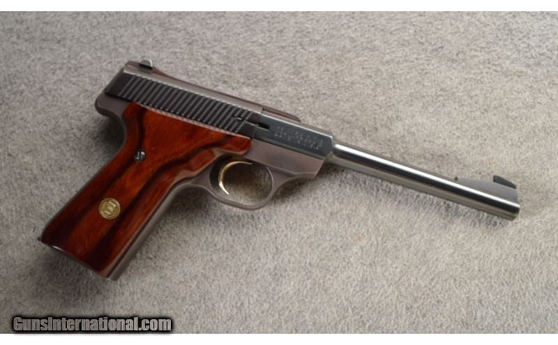 Description: The Browning Challenger II is a semi-auto rimfire pistol chambered in .22 long rifle with a 6.75" barrel. The Challenger II was produced from 1976 to 1982. This gun features a gold-plated trigger, two piece walnut stock with gold "B" medallions. This pistol remains in great used condition with some light handling wear. Comes a single magazine. .22 Long Rifle SOLD Chambers: Semi auto. Metal Condition: 95% remaining. Fine scattered surface scratches with light muzzle wear. Wood Condition: Fine surfaces scratches 98%. Bore Condition: Bright bore with Barrels: 6.75" barrel. Triggers: Single gold trigger. Sights: Fixed front with an adjustable rear. Item Location: Owatonna, MN |