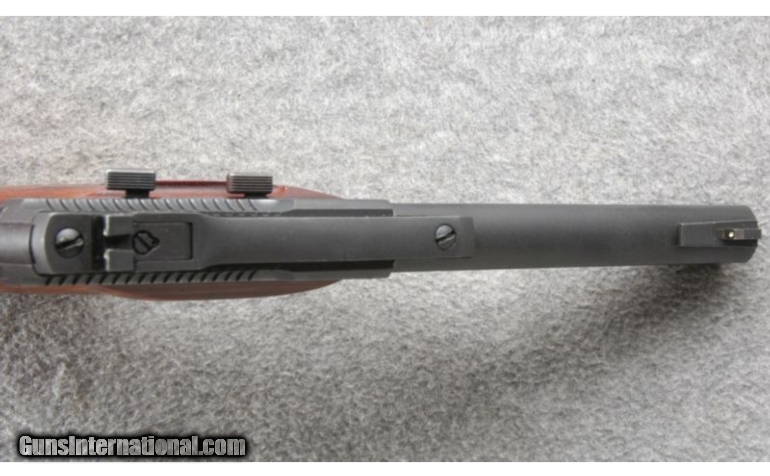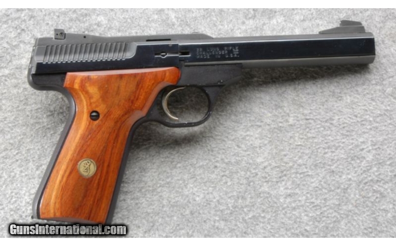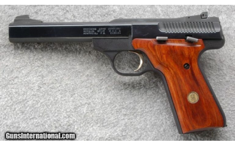 Description: This nice Browning Challenger III is in very nice condition. There are some micro scratches on the high gloss blue sides and also on the matte black. None go through the blue. SOLD Manufacturer: 1983 Caliber Info: .22 Long Rifle. Chambers: Semi-Auto. Metal Condition: Excellent with minor marks. Wood Condition: Like new, Bore Condition: Bright and shiny. Barrels: 5.5 inch with gloss blue sides and matte finisk on the top and bottom. Triggers: Singe gold color. Stock: Nice wood with Browning Medallions. Weight: 2 Lbs 1 Oz. Sights: Three dot, Micro adjust rear notch and a Partridge front. Extras: Comes with correct factory box. Item Location: Owatonna, MN |
