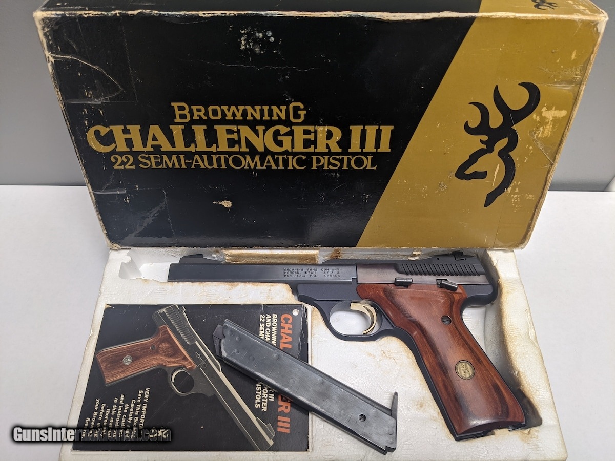 Description: Guns Listing ID: 359929 In original box with paperwork, 2mags SOLD Manufacturer: BROWNING Model: CHALLENGER III Caliber Info: 22 LR Condition: Used - Non-Certified Barrels: 5.5 BARREL Finish: BLUED |