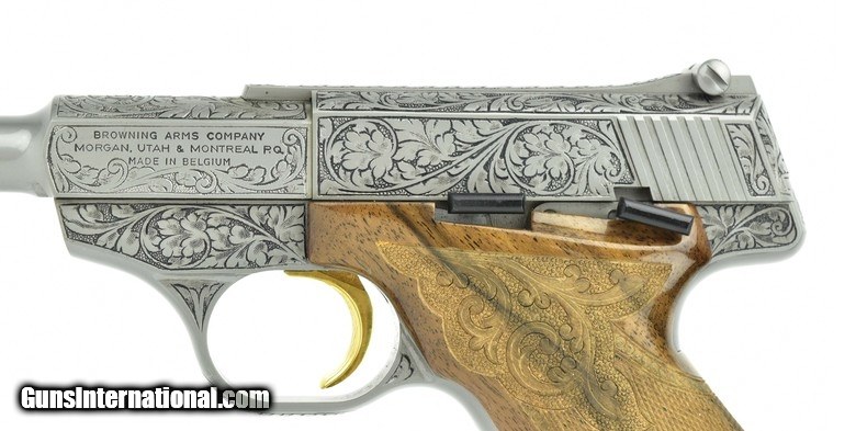 Description: Browning Renaissance Challenger .22 LR caliber pistol. Rare Belgian made Renaissance model with 4½” barrel. Made in 1972. A beautiful piece, in pristine condition with pouch.