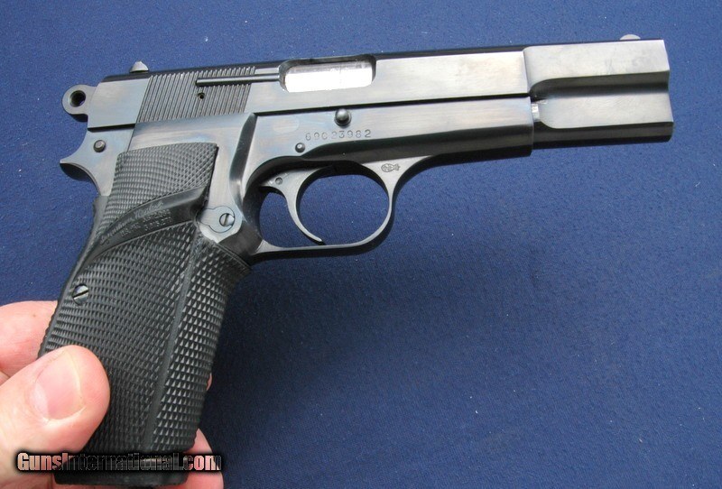 Description: Nice, used 1969 9mm Belgium Browning Hi-Power. No box or papers, comes with one 13 round magazine. Has Pachmayr rubber grips installed. Not a safe queen, has some minor scratches and high edge wear. Mint, bright bore and action. This would be fantastic shooter and carry gun if you love the classics, like I do. Condition is as you see it, nothing hidden or fixed for the pics. $35 shipping to the lower 48 and 3% surcharge for using a CC. If you pay with a personal check, you can expect us to hold the item for up to 10 days to ensure that the check clears. SOLD |