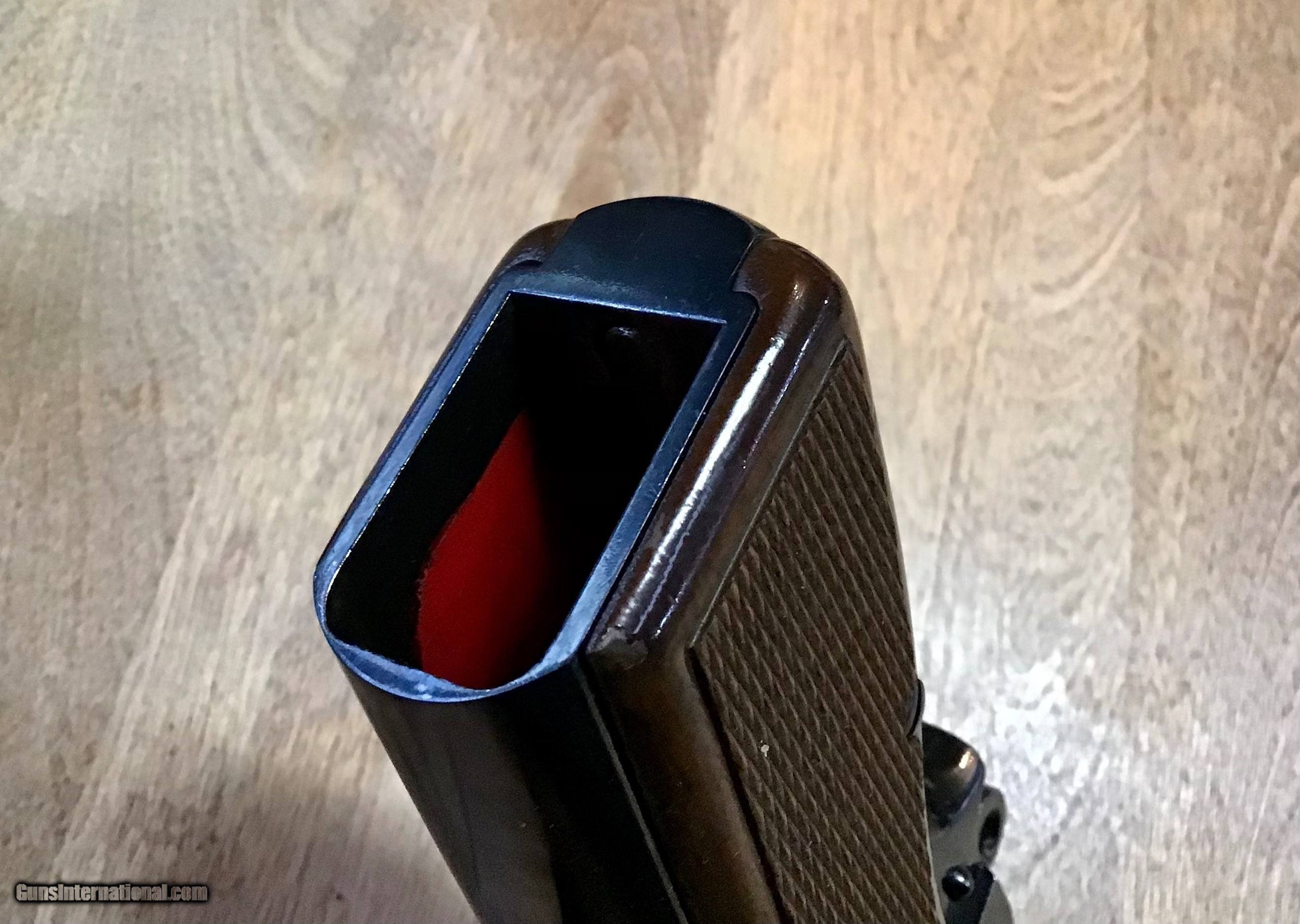 Description: This is a gorgeous Browning Hi-power . Early C series serial number with T attributes. Beautiful bluing and wood grips with red inner panel. Comes with 1 original magazine and 2 after market . Also a very nice original leather holster . The gun is in overall excellent condition and show little if any signs of use. Will make a excellent addition to any collection. SOLD Handgun Caliber: 9x19mm Parabellum (9mm Luger, 9x19mm NATO) Manufacturer: Browning Model: Hi-Power Pistol Condition: Excellent Metal Condition: Excellent Wood Condition: Excellent Bore Condition: Excellent |