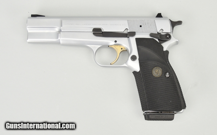 Description: Browning Hi-Power .40 S&W caliber pistol. Scarce .40 caliber model with silver chrome finish in excellent condition.