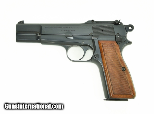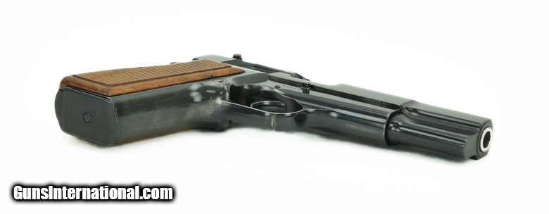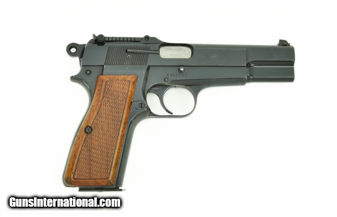 Browning Hi-Power 9mm caliber pistol. Original Belgian T-Series gun with Tangent sight. Near excellent condition with light wear.