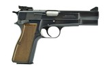Browning Hi-Power 9mm caliber pistol. Late model with blued finish and adjustable sights. Excellent condition.