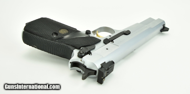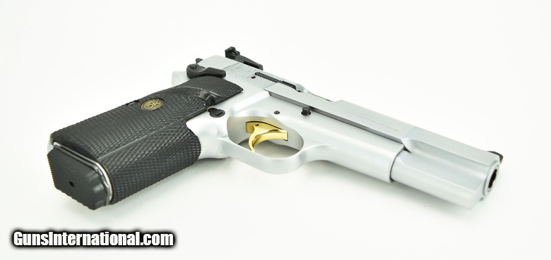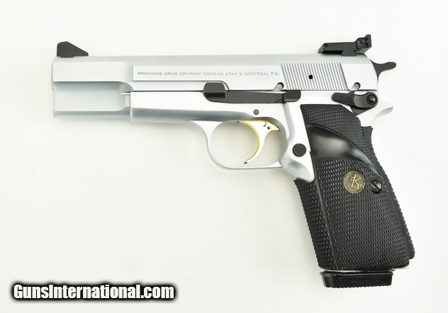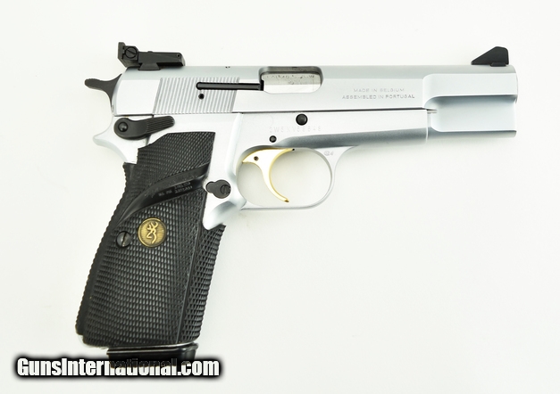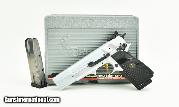 Description: Browning HP .40 S&W caliber pistol. Late model with silver chrome finish and adjustable sights in excellent condition with box.
