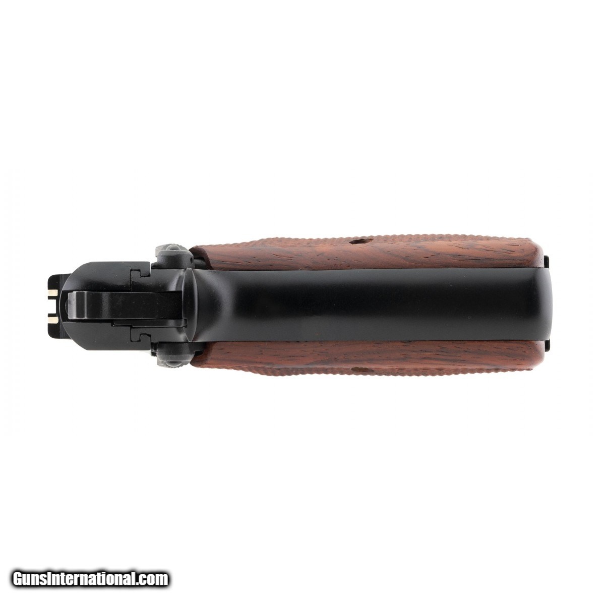 Description: " Mark III model with black finish and custom wood grips. Shows light wear, overall very good condition. SOLD |
