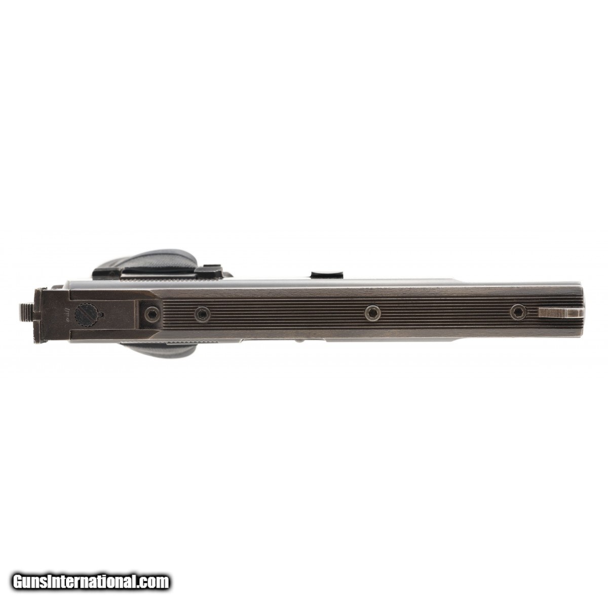 SN: T301447. Belgian ""T series"" gun customized for Bullseye target shooting. Has a Bo-Mar sight rib added. The bore is excellent, the finish has turned to patina.