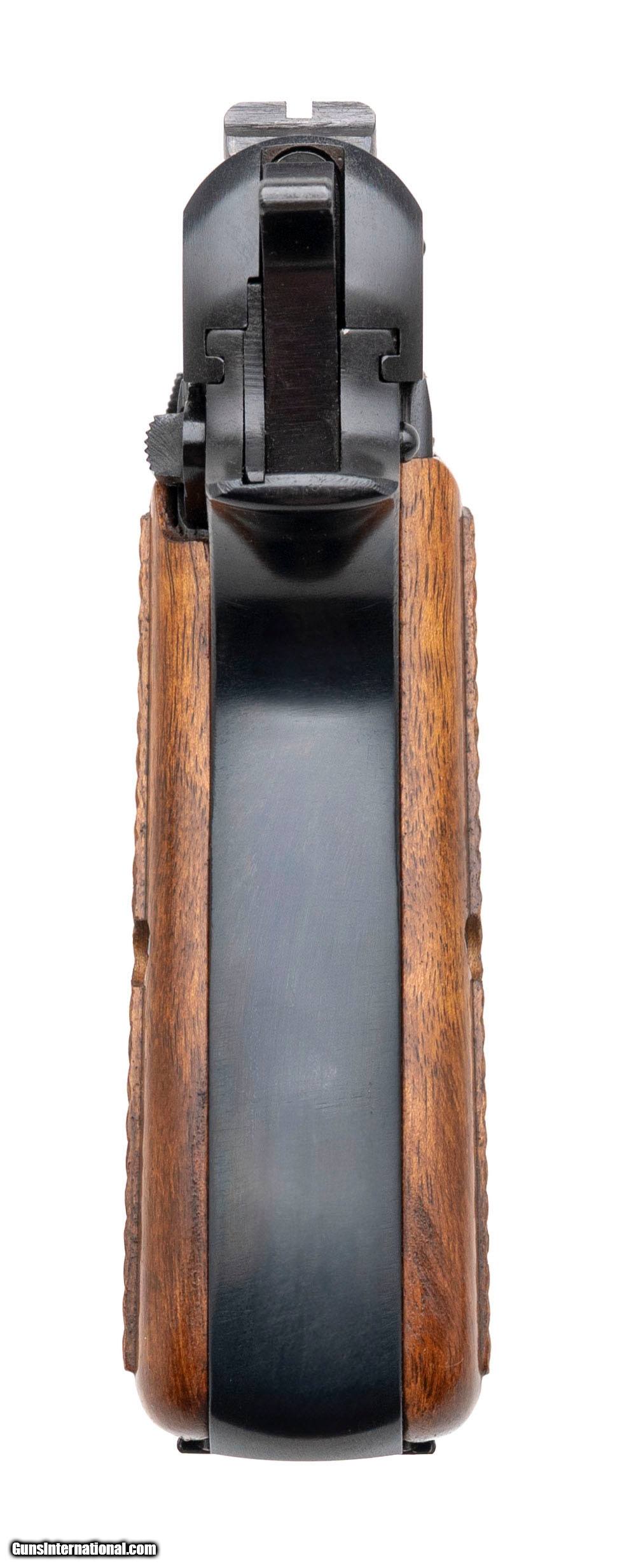 Description: "SN: 76C80878. Made in 1976. 9mm with a 4.7"" barrel. Bore is bright with strong rifling. Belgian made Hi-Power with red back grips. Finish and grips are in excellent condition. Overall excellent condition. SOLD |