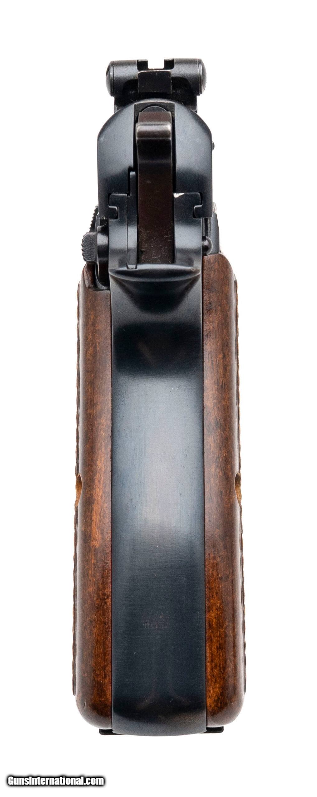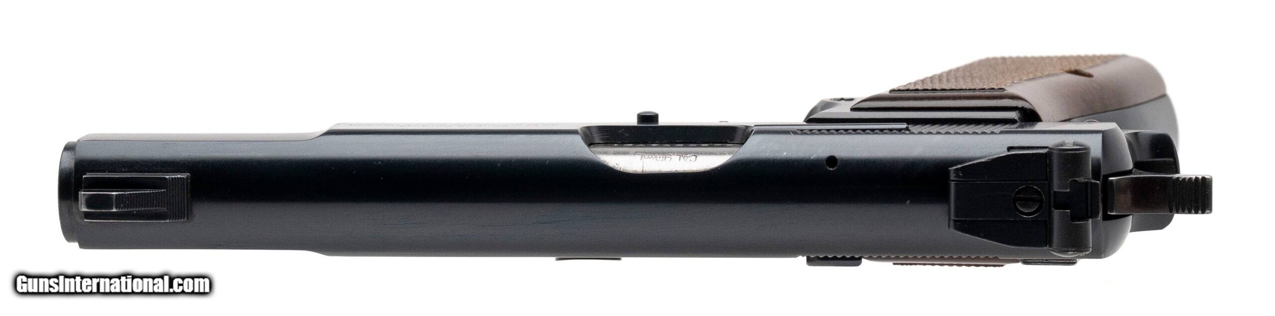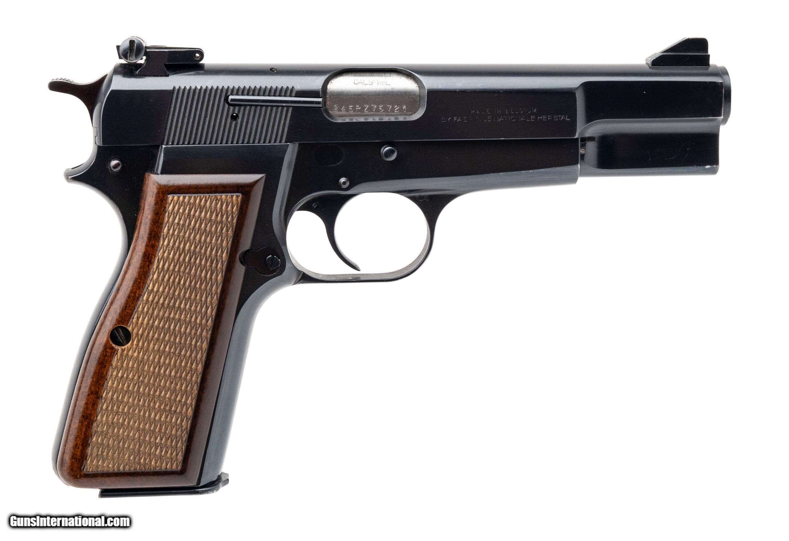 Description: "SN: 245PZ76721. Made in 1981, 9mm with a 4.7"" barrel. Bore is excellent. Belgian made single-action pistol with factory target front & rear sights, manual thumb-safety, blued finish, and checkered wood grips. Finish & grips show minor handling marks. Overall condition is very good. Price: $1,500.00 Contact Seller |