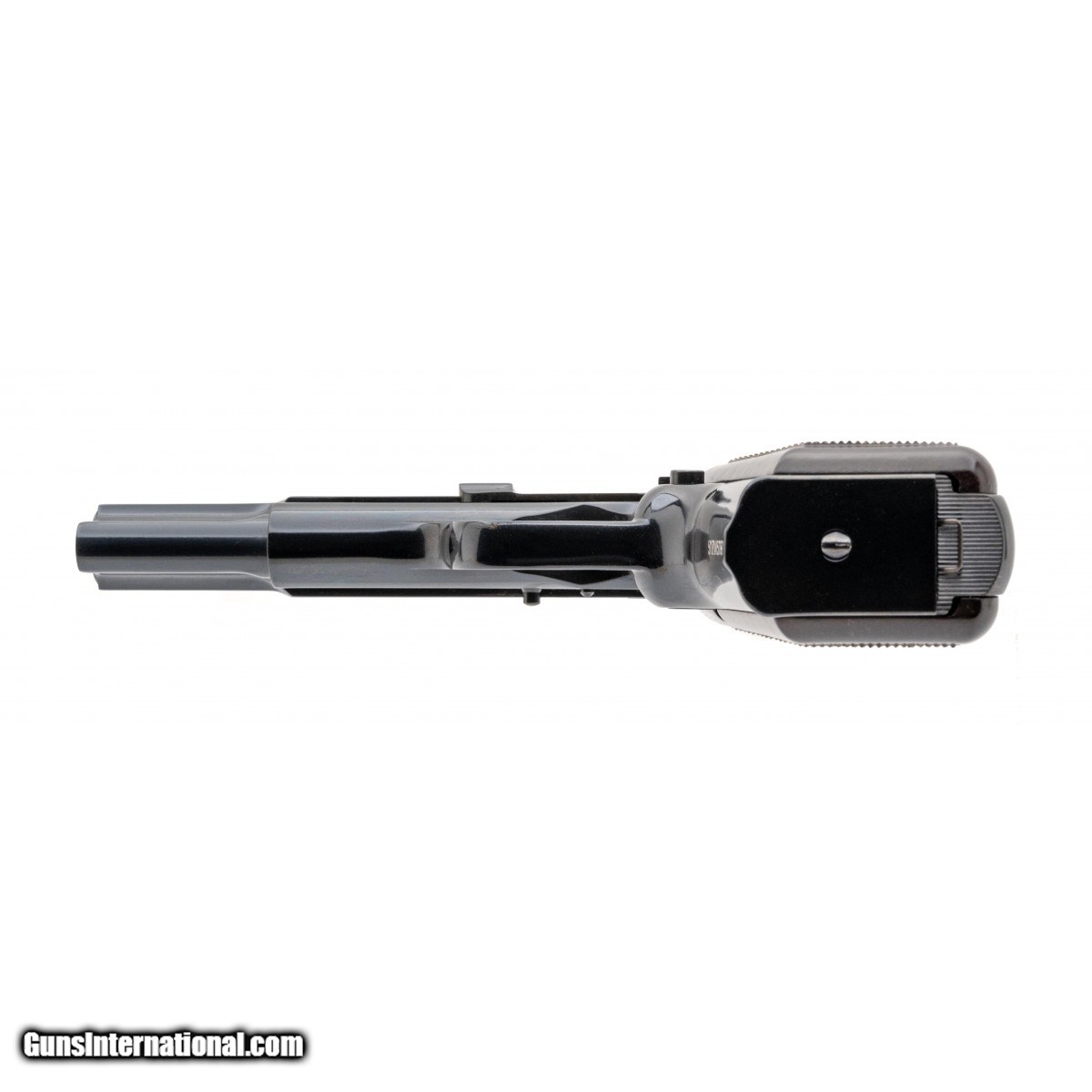 Description: " SN:511ZW50804. Modern production, 9x19mm parabellum with a 4.75"" barrel, Bore is in excellent condition. Full size frame with diamond wood grips, ambidextrous safety, 3-dot sight and blued finish. Overall condition is excellent. Comes with box. Consignment. SOLD |