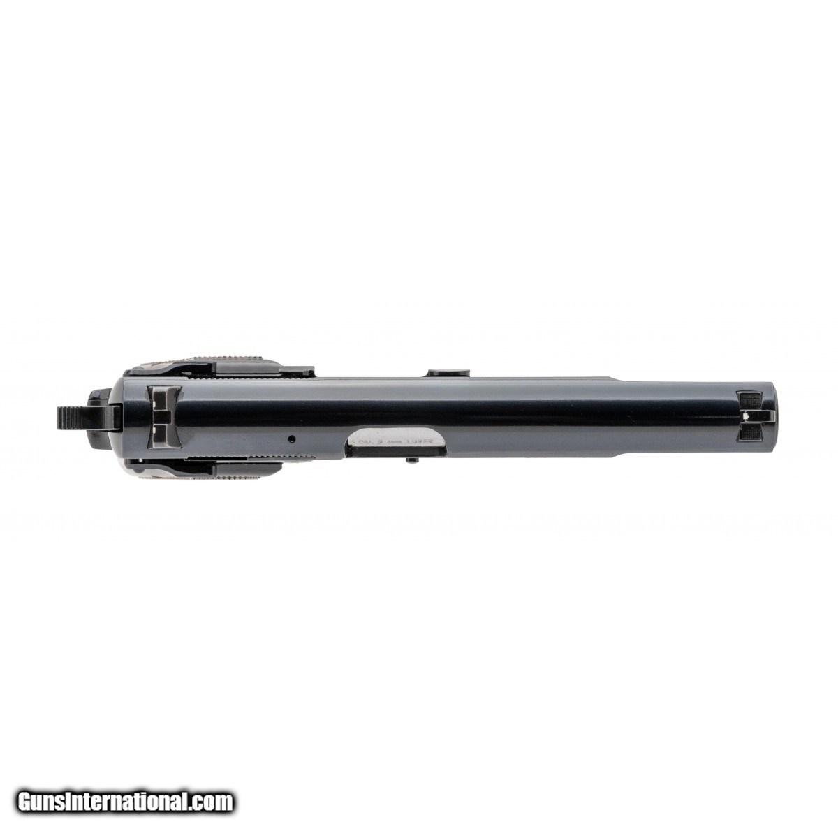 Description: " SN:511ZW50804. Modern production, 9x19mm parabellum with a 4.75"" barrel, Bore is in excellent condition. Full size frame with diamond wood grips, ambidextrous safety, 3-dot sight and blued finish. Overall condition is excellent. Comes with box. Consignment. SOLD |
