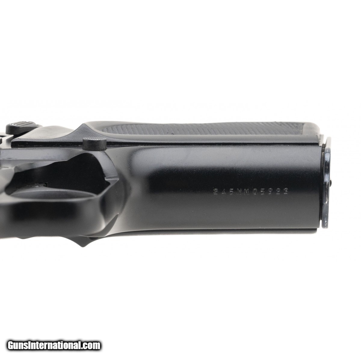 Description: " SN: 245NM05923. Made in 1990. 9mm with a 4.7"" barrel. Bore is excellent. Full size steel frame pistol. Black finish is in good condition with wear present on the left side of the slide by slide release. Black grips have minimal handling wear present. Overall condition is very good. SOLD |