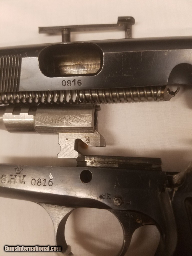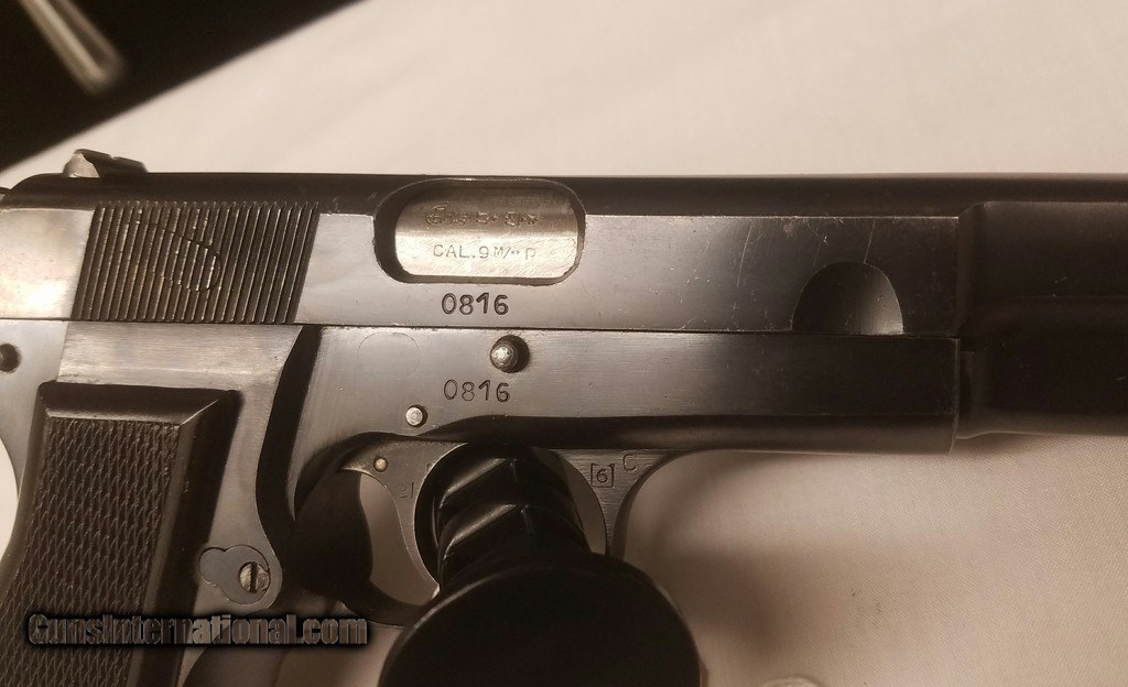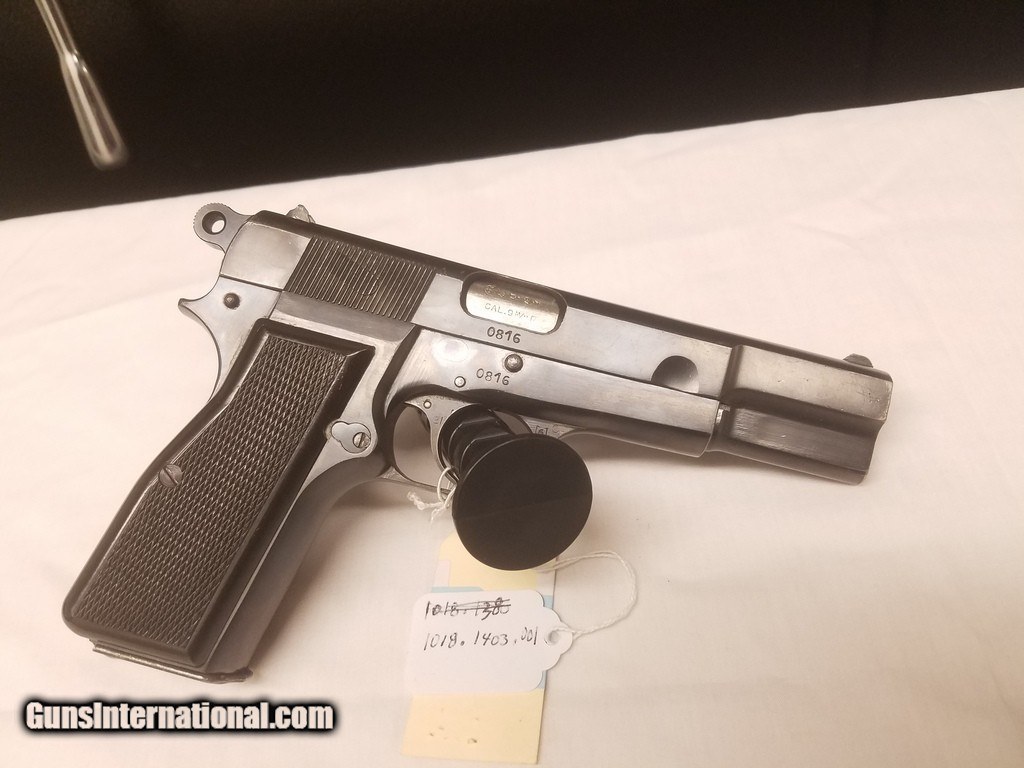 Description: FN Browning High Power Danish Contract. Manufactured in Belgium in 1946, this is a rare early post war Fabrique Nationale Browning High Power 9mm Semi-Auto Pistol. Condition is very good. All parts are original with original finish. Bluing shows minor wear from use with 95% finish remaining. Serial # 0816 found on all parts. Email with any questions. SOLD Curio/Relic: Yes Manufacturer: FN Model: High Power Serial Number: 0816 Caliber Info: 9mm Parabellum |