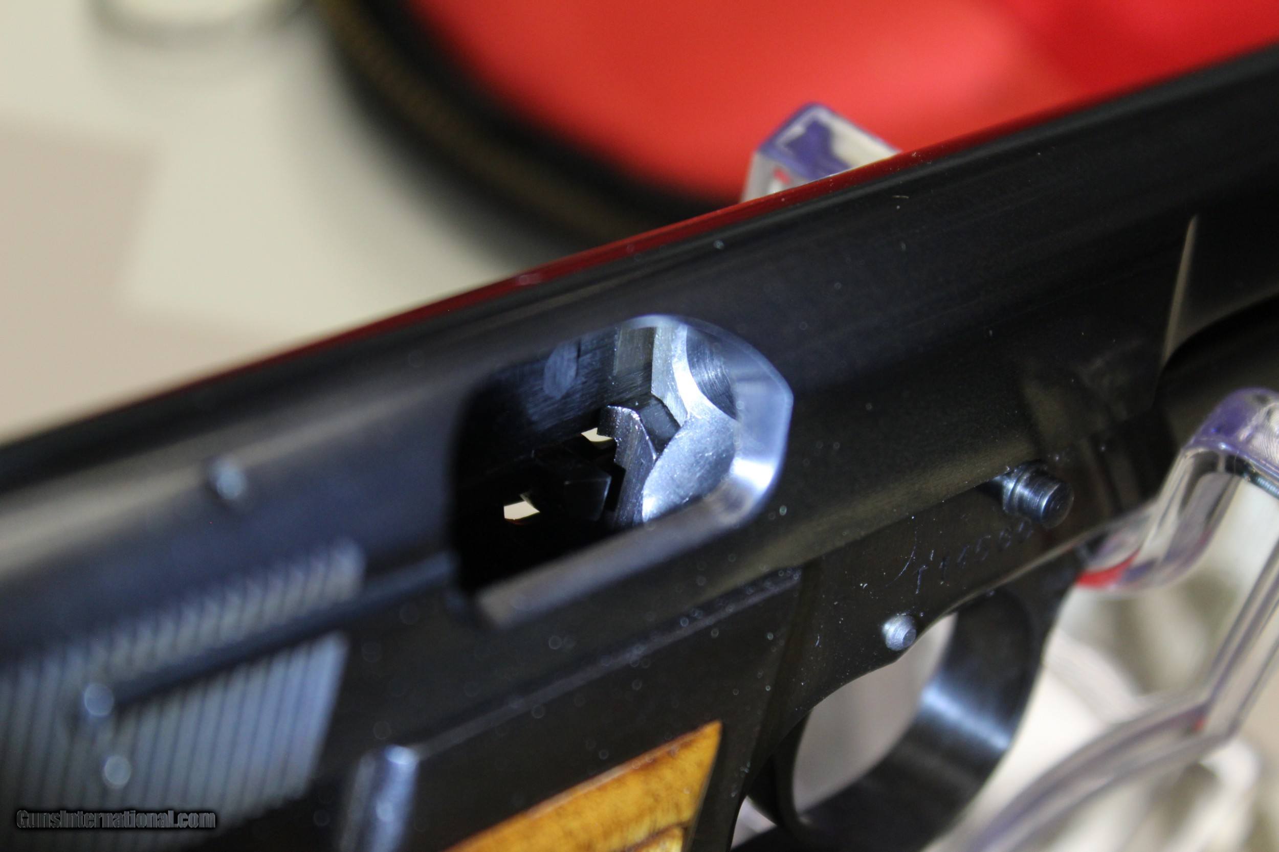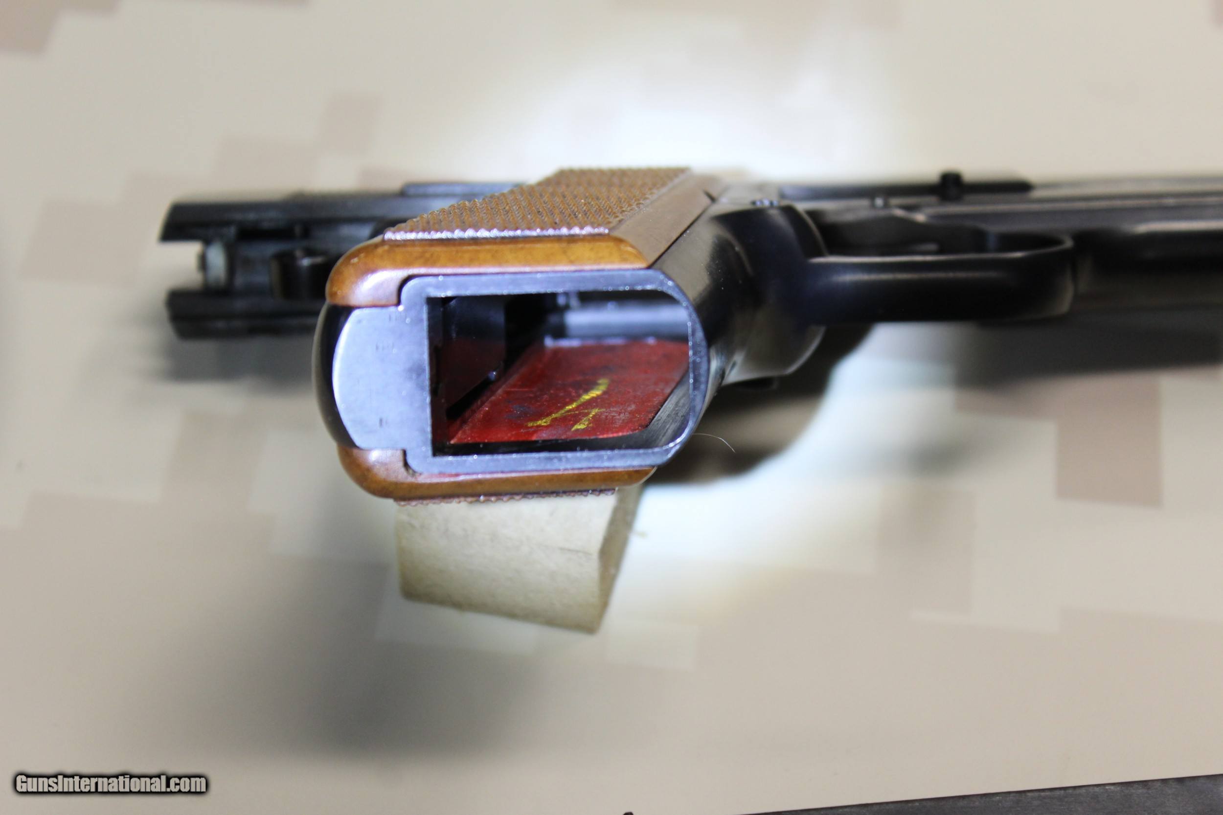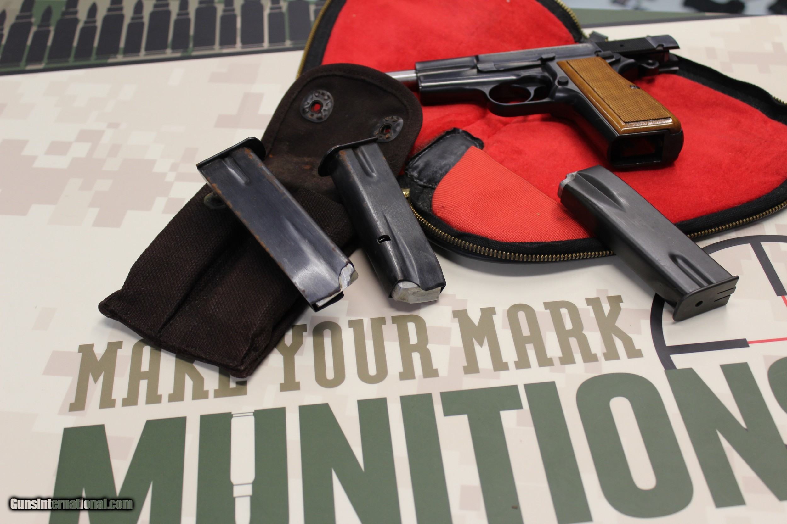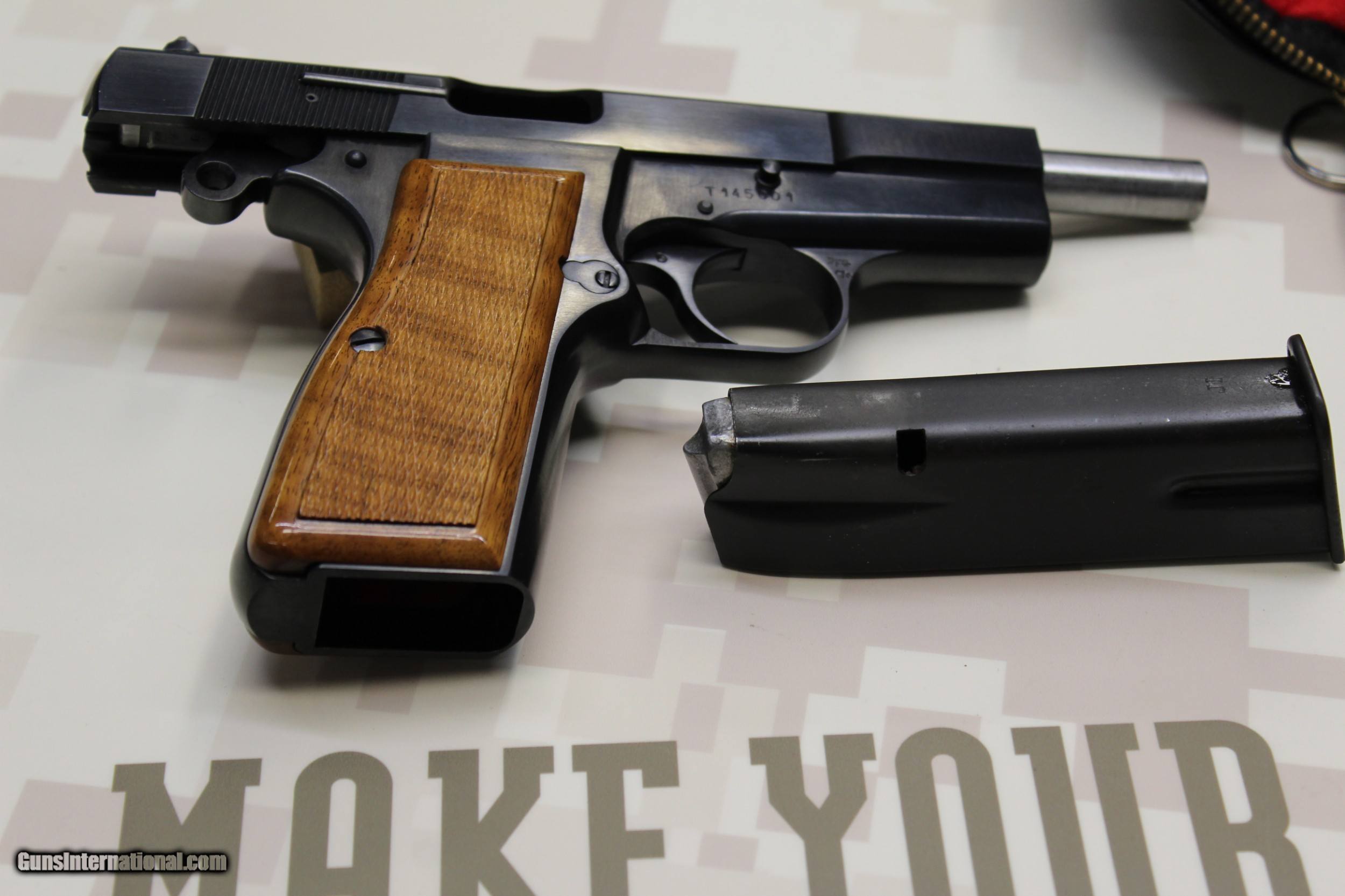 Description: This is awesome example of a 1965 T series serial numbered Browning Hi Power pistol in never fired condition. Detailed examination reveals this firearm appears have a zero round count. In superior condition for it's age, this is a perfect collectors piece. Not being a collector, thetemptation go out and shoot this is extreme. As a result a collector needs to rescue this firearm from us. you know you will be doing the world of perfect Browning Hi Power a tremendous favor by removing this from our inventory. Included with this firearm are the sought after black pouch with gold zipper in very good condition, a double mag pouch is good condition and two extra magazines in fair to good condition. Due to the nature of this firearm and risk of damage, returns will incur a 50% restocking fee. We can only ship to an FFL. Basic shipping will be $25 plus insurance cost. SOLD Manufacturer: Browning Model: Hi Power Serial Number: T145001 Caliber Info: 9mm Condition: Excelent Metal Condition: Perfect Wood Condition: Perfect Bore Condition: Perfect Finish: Blue Manufacture Date: 1965 |