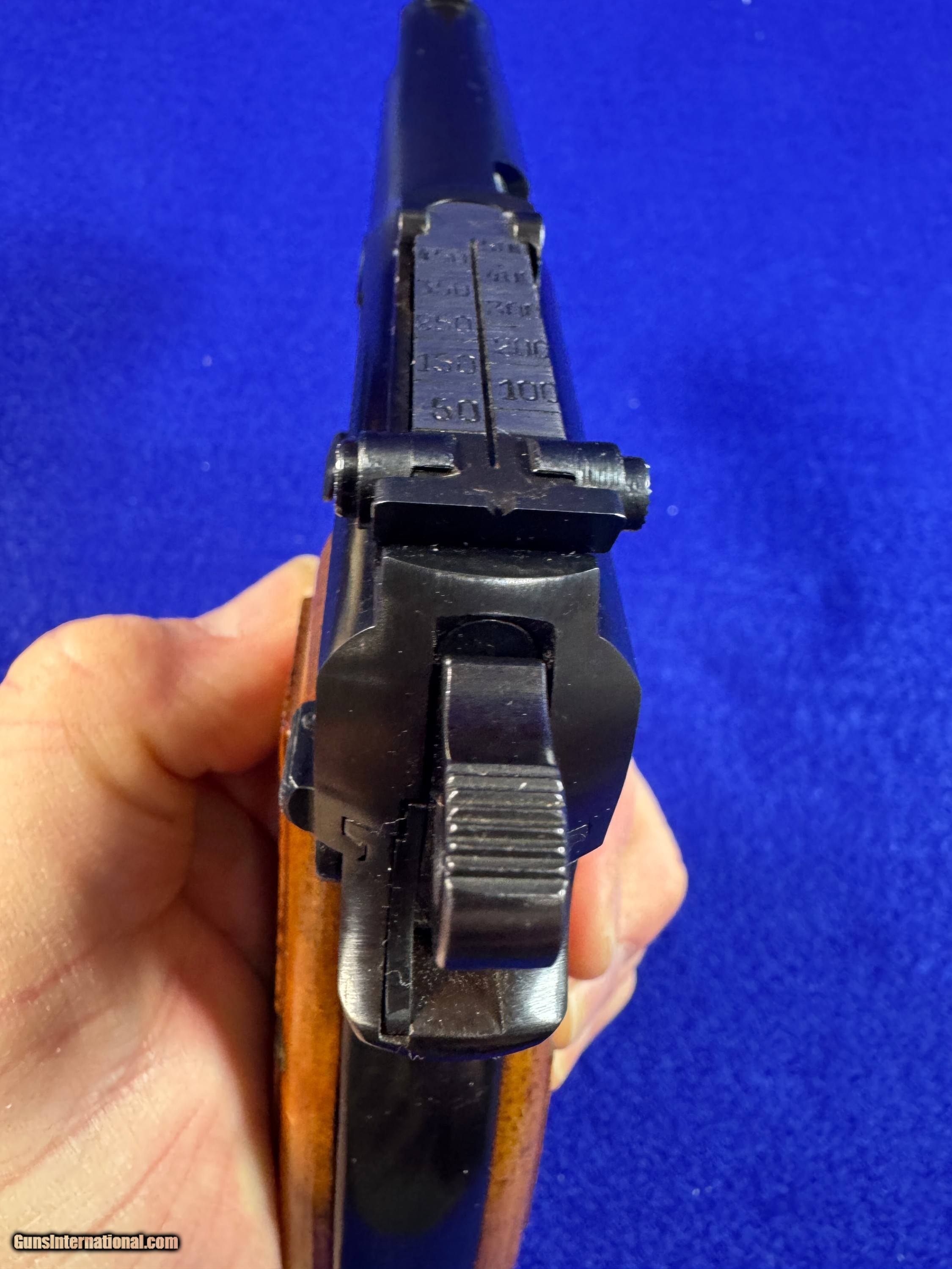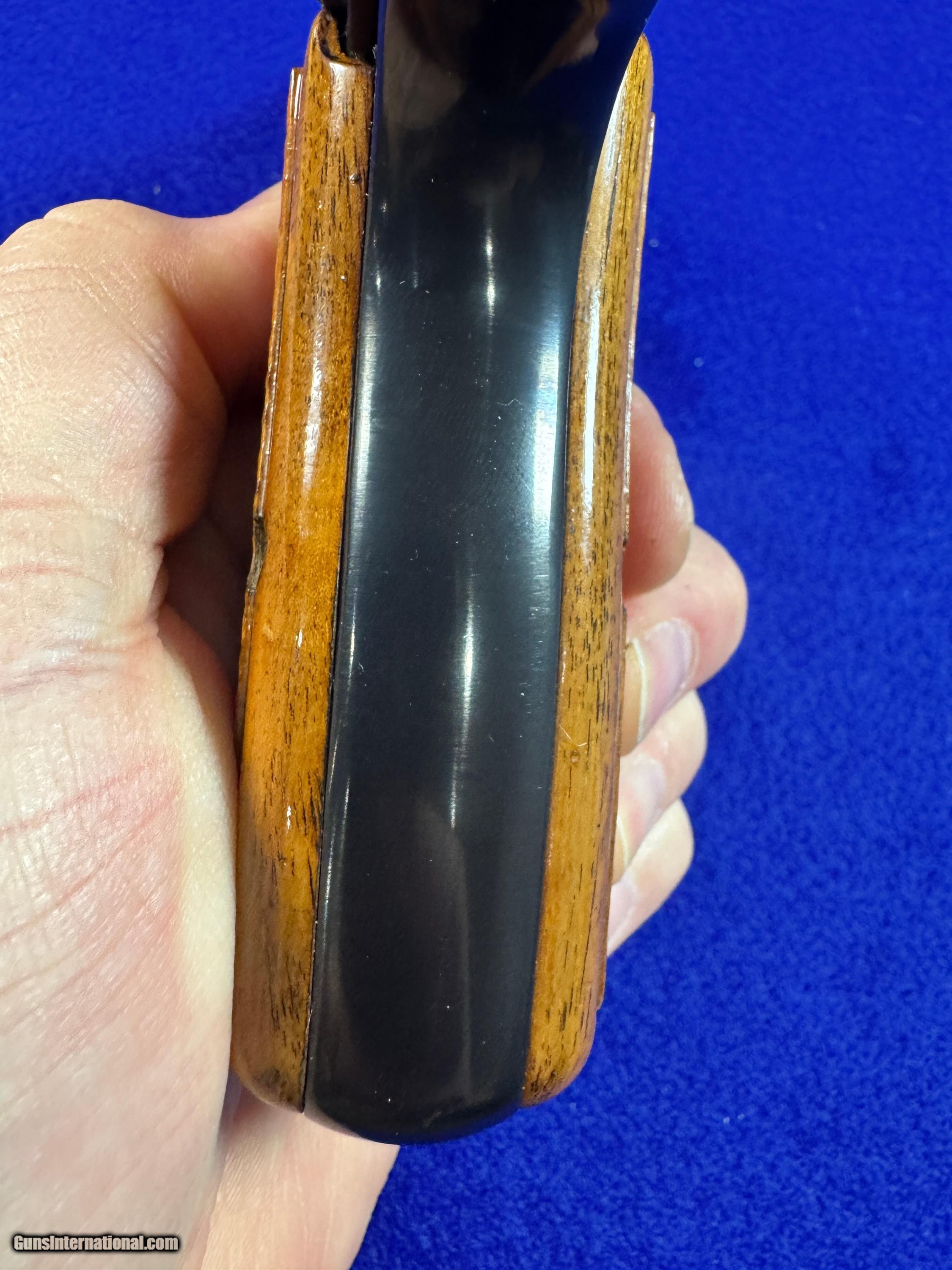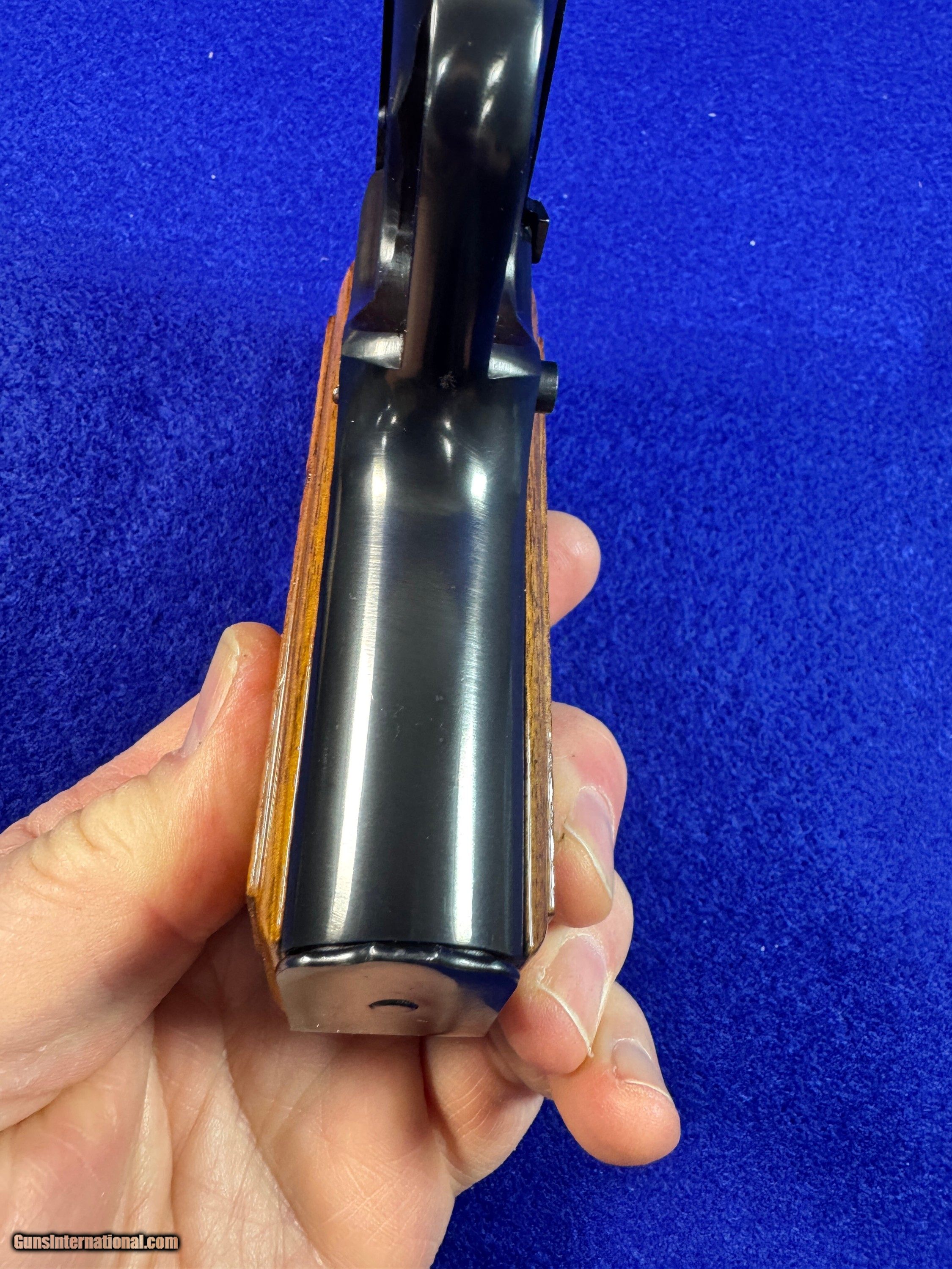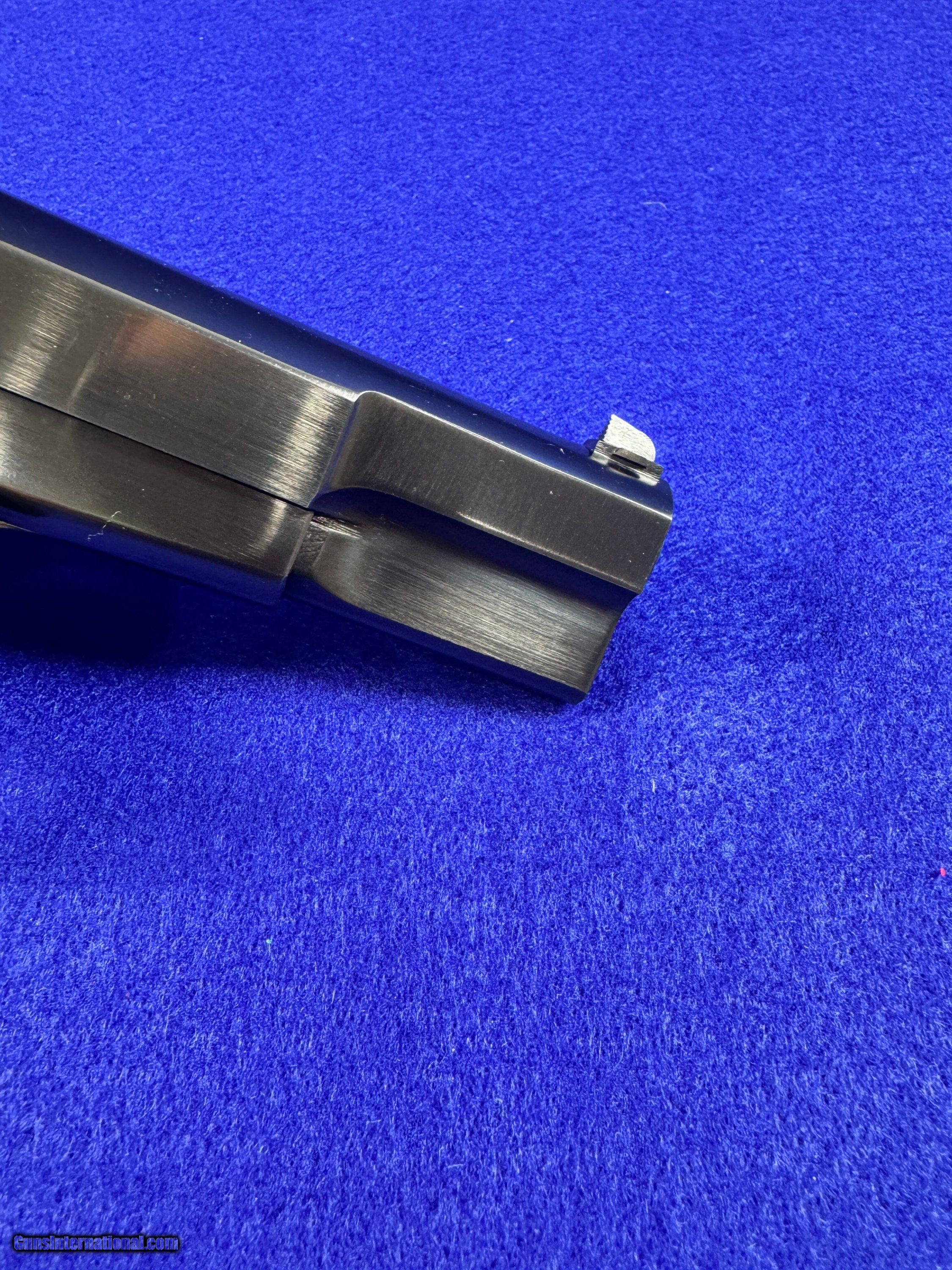 Description: Here is a beautiful example of a T Series Belgian Hi Power chambered in 9mm Para. Features a 4 5/8" barrel. Traditional Ring Hammer with RARE Tangent Sight. The Tangent Sight was made famous on prewar and early war models. Browning periodically put them on guns in the 1960's and they are highly coveted. Finished in a hi polish blue with original walnut grips with the red backs. Included is a 1960's box which is not often seen. The traditional "rug" is found with these pistols. Browning in that time period instructed gun shops here in the U.S. to ditch the boxes and push the sale of the black, soft cases with red interior. The box is in excellent condition. A very nice, and rare example of a timeless claasic that was from another time. These T Hi Powers were hand finished and fit by tradesman. I accept Post Office Money Orders, Personal Check, Zelle and credit card as payment. All Credit Cards incur a 2.99% fee which is in addition to the final price as shown in the Order. Please allow me to give you a complete total. All Credit Cards will need to be done over the phone. Thank You. Insurance is not included in shipping. Please allow me to add that to the total at your request at a rate of 2% per every $100. Thank you for looking. Please let me know any questions. Many more pictures available. Curio/Relic: Yes Handgun Caliber: 9x19mm Parabellum (9mm Luger, 9x19mm NATO) Manufacturer: FN/Browning Model: Hi Power Serial Number: T254334 Barrel Length: 4 5/8 Condition: Like New Metal Condition: 98 Wood Condition: 99% Bore Condition: 10 out of 10 Action: Single Stock: Walnut Finish: Hi Polish Blue Sights: Tangent Manufacture Date: 1968 Extras: RARE Factory Browning Box Price: $2,850.00 Shipping: $45.00 Buy Now Contact Seller |