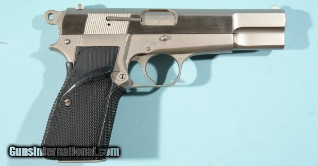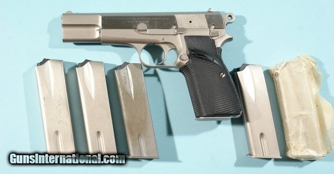 1972 BELGIUM BROWNING HI-POWER OR HI POWER 9MM BRUSHED NICKEL 9MM PISTOL WITH 6 MAGS.