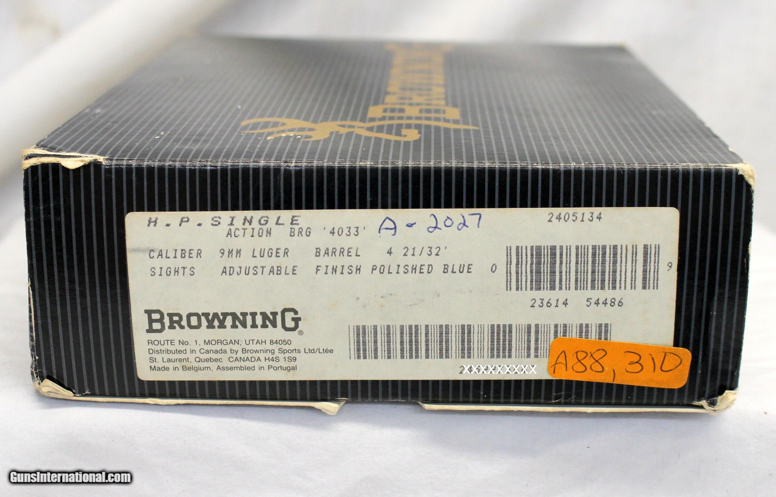1988 Browning HI-POWER Semi-automatic Pistol 9mm BOX & MANUAL Excellent!
